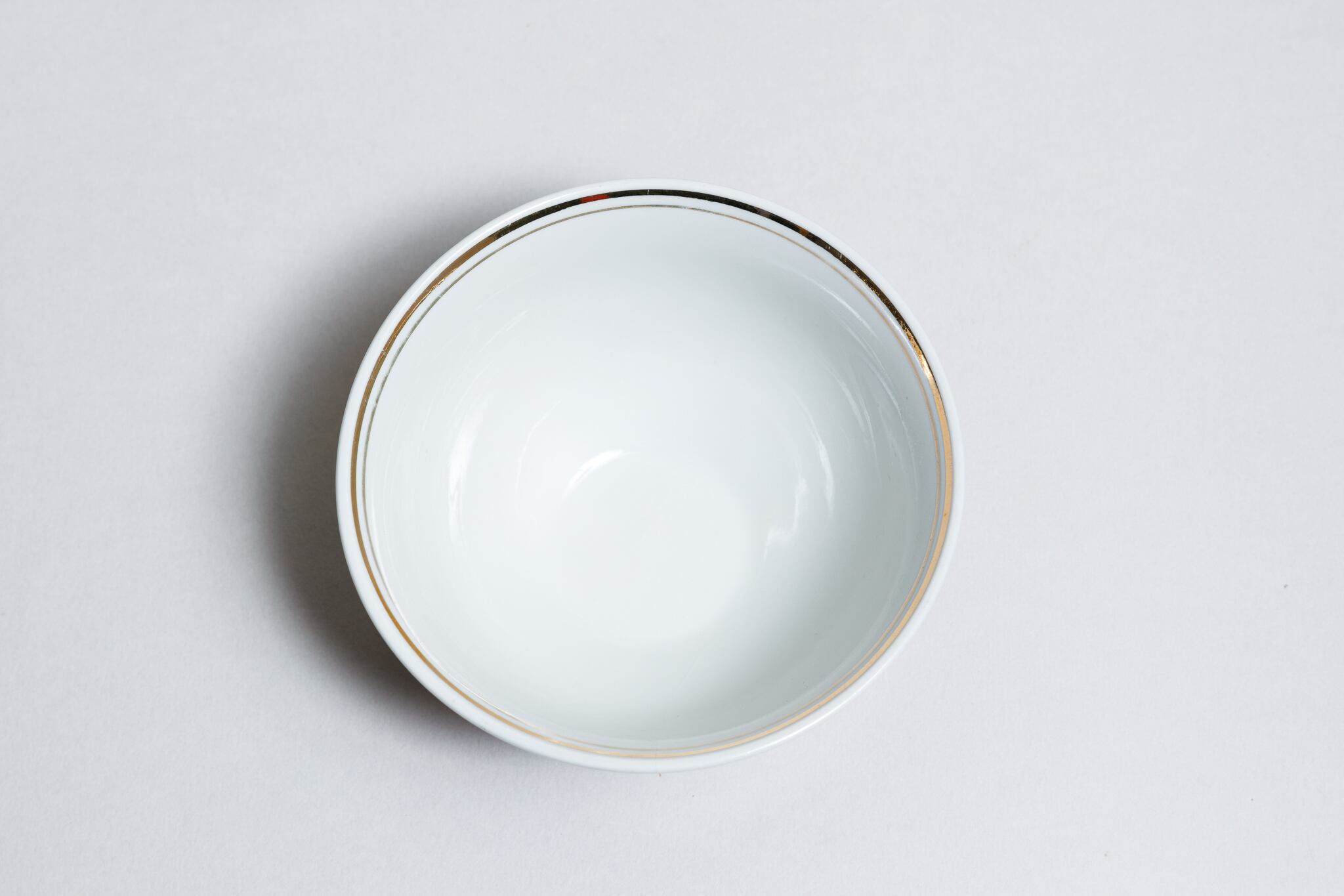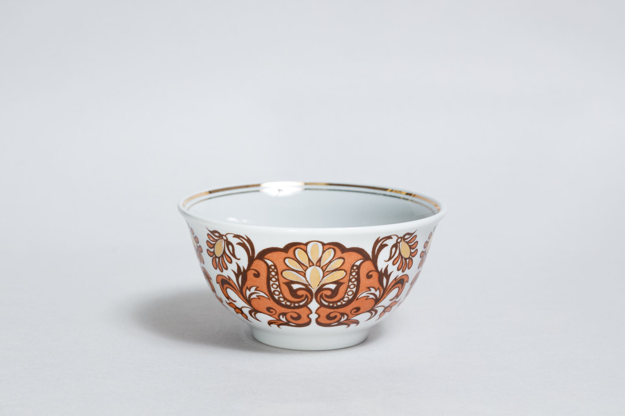 また、ソ連製は日本製などと違い、等級によって作りの丁寧さが違い、低い等級の物は、絵付けのムラがあったり、飲み口や底の多少の凹凸などがあったりします。