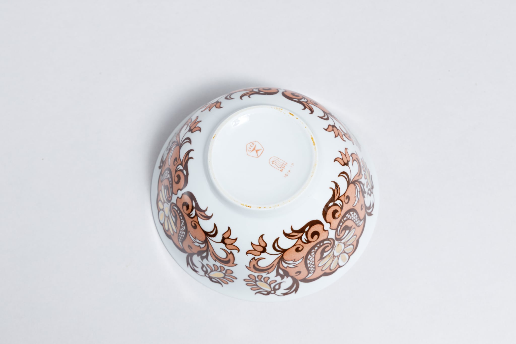 ヴィンテージ 植物幾何学柄大きめお茶碗 リガ磁器工場 0499