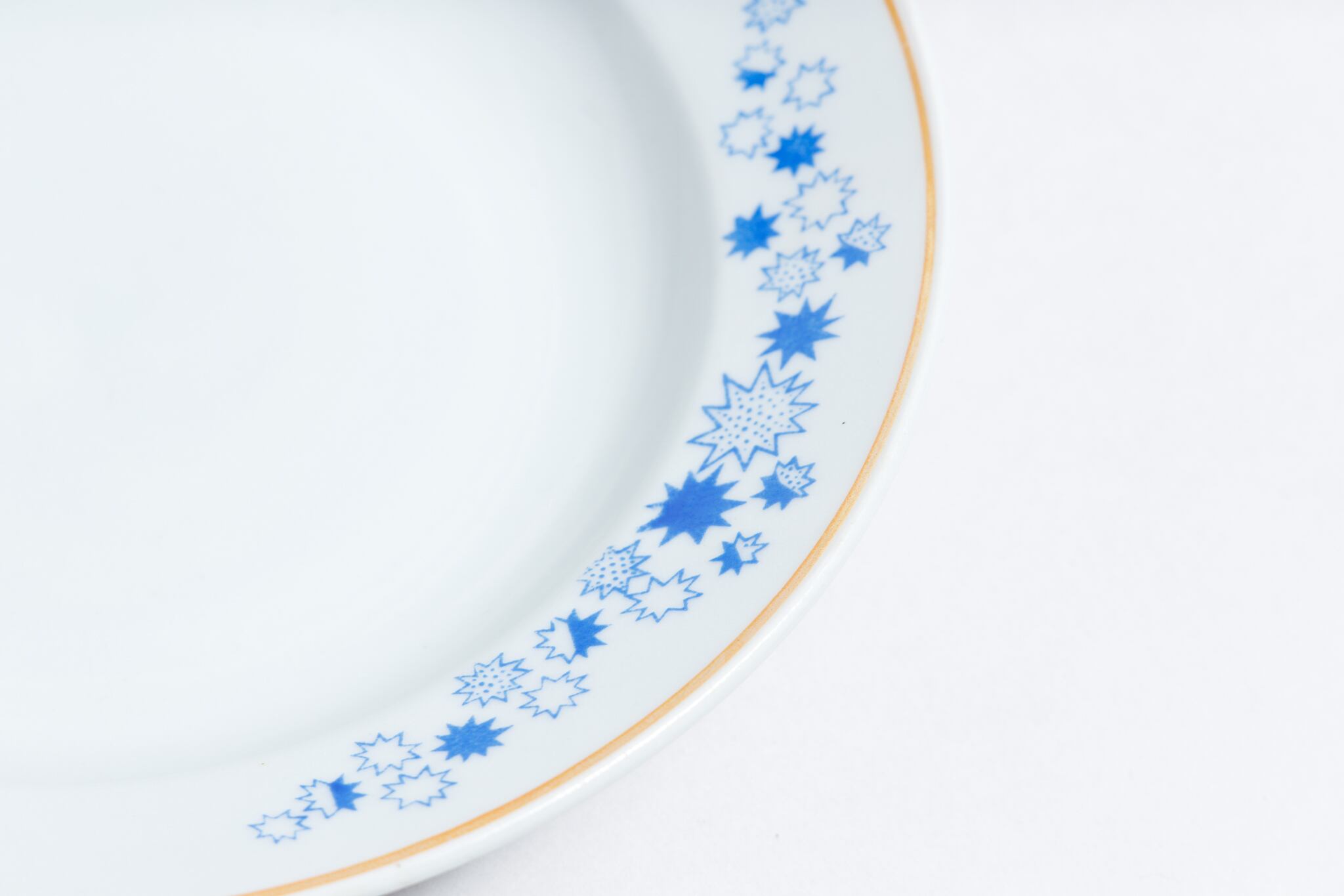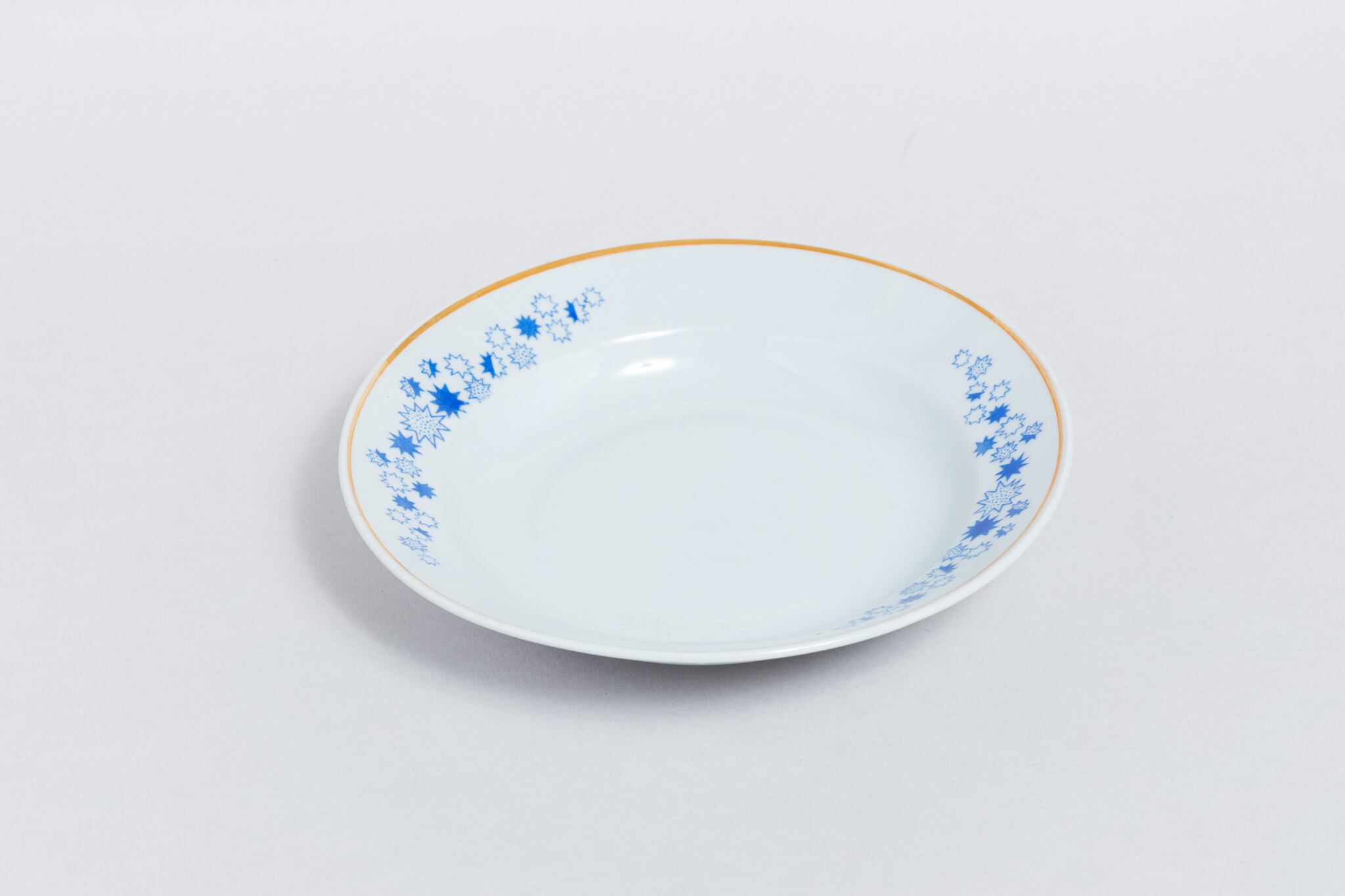 旧ソ連時代に生産されたスープ皿です。パチパチと弾けるような柄が、ポップで可愛らしいです。ソ連の工場で、飛び散る火花を連想してしまう、構成主義的なデザインを感じます。