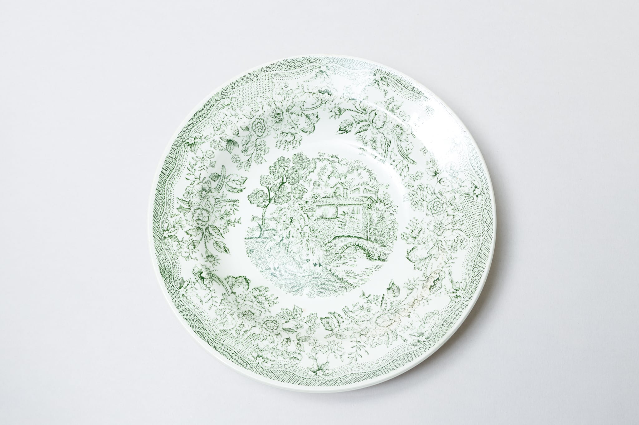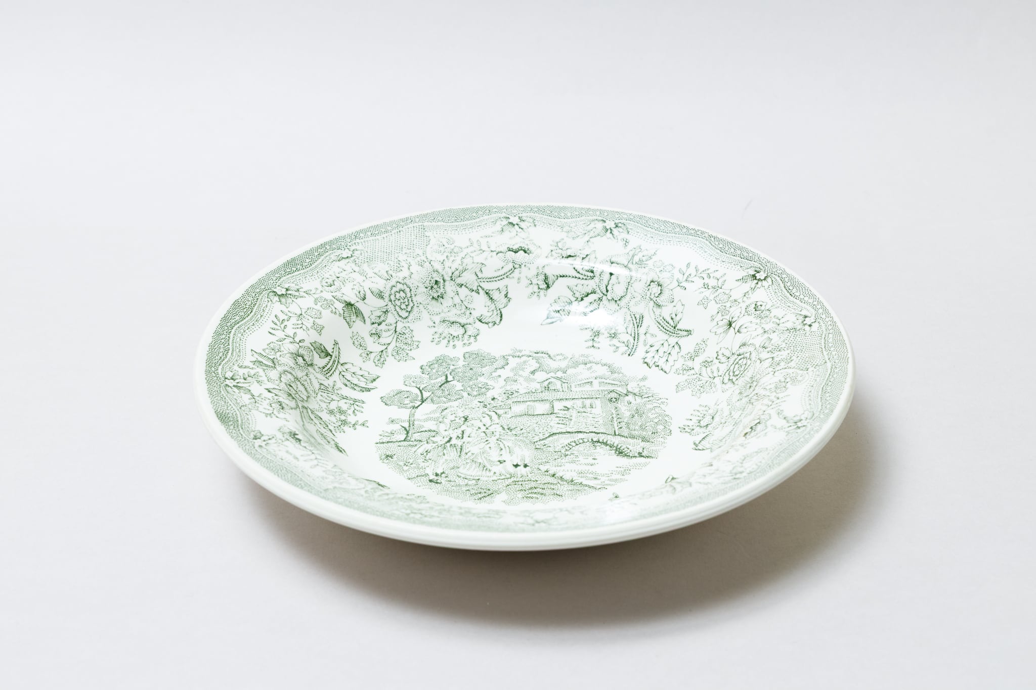 再入荷:ヴィンテージ緑の宮廷風模様スープ皿 ブディ陶器工場 旧ソ連 0517