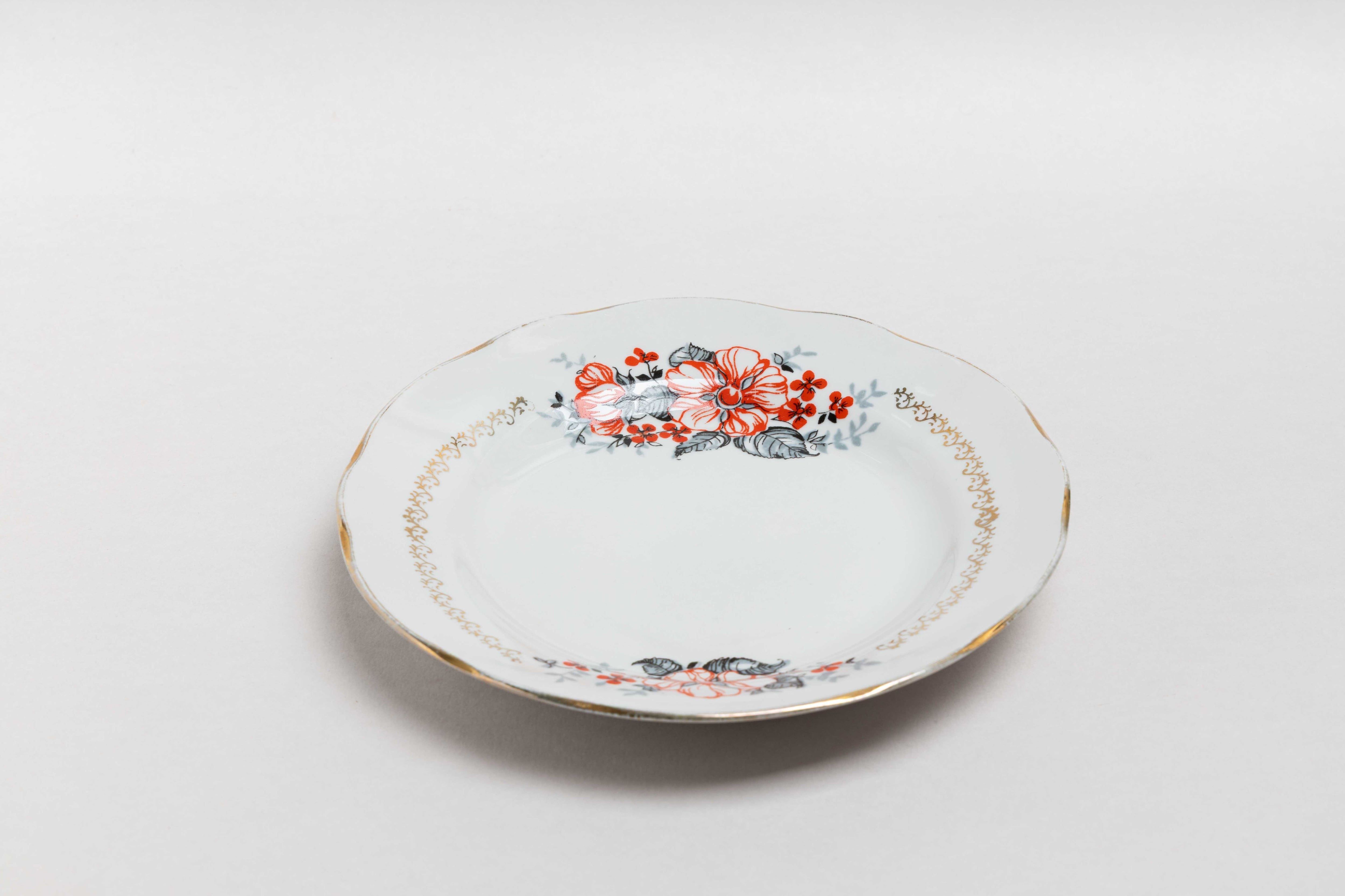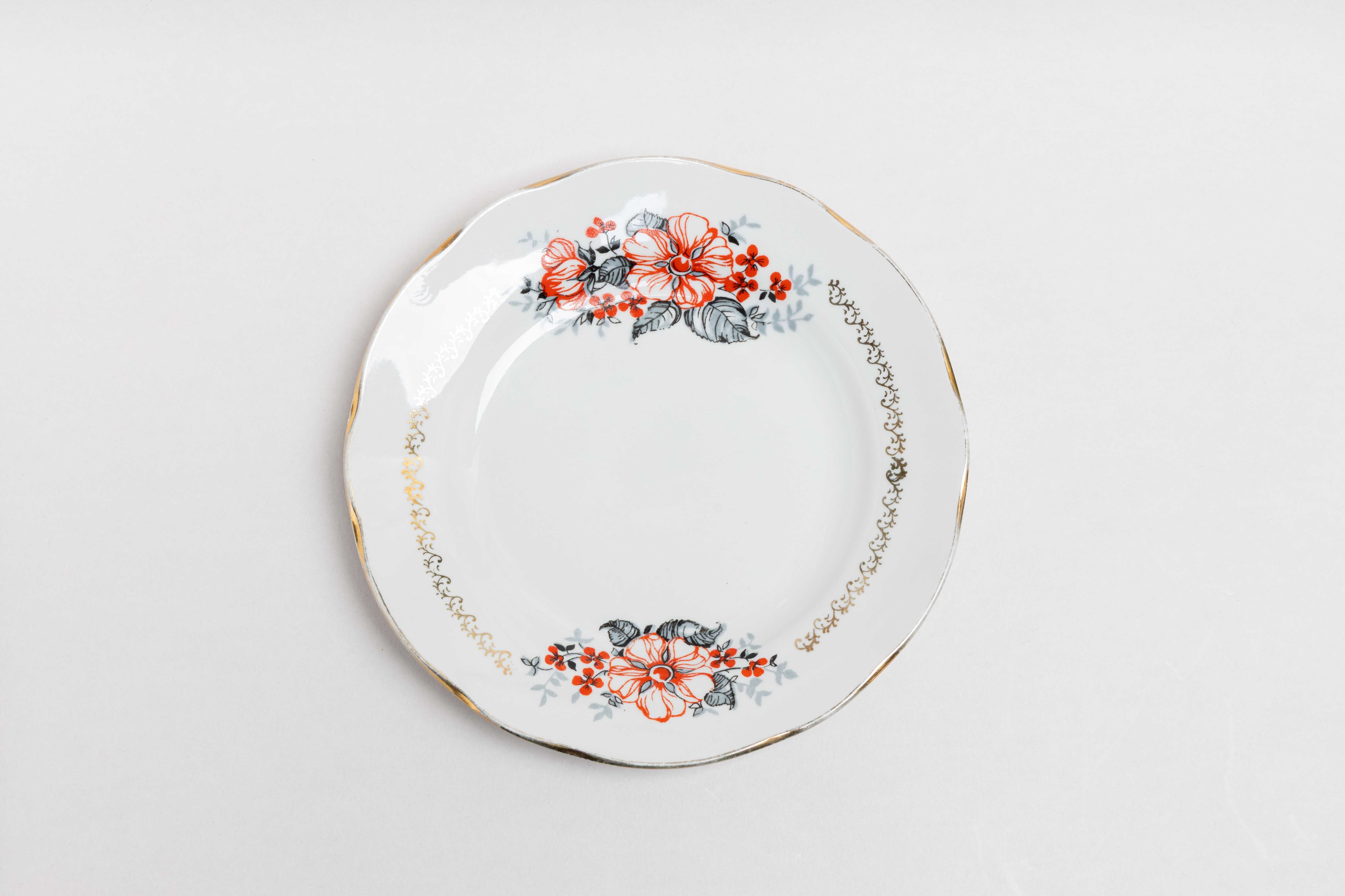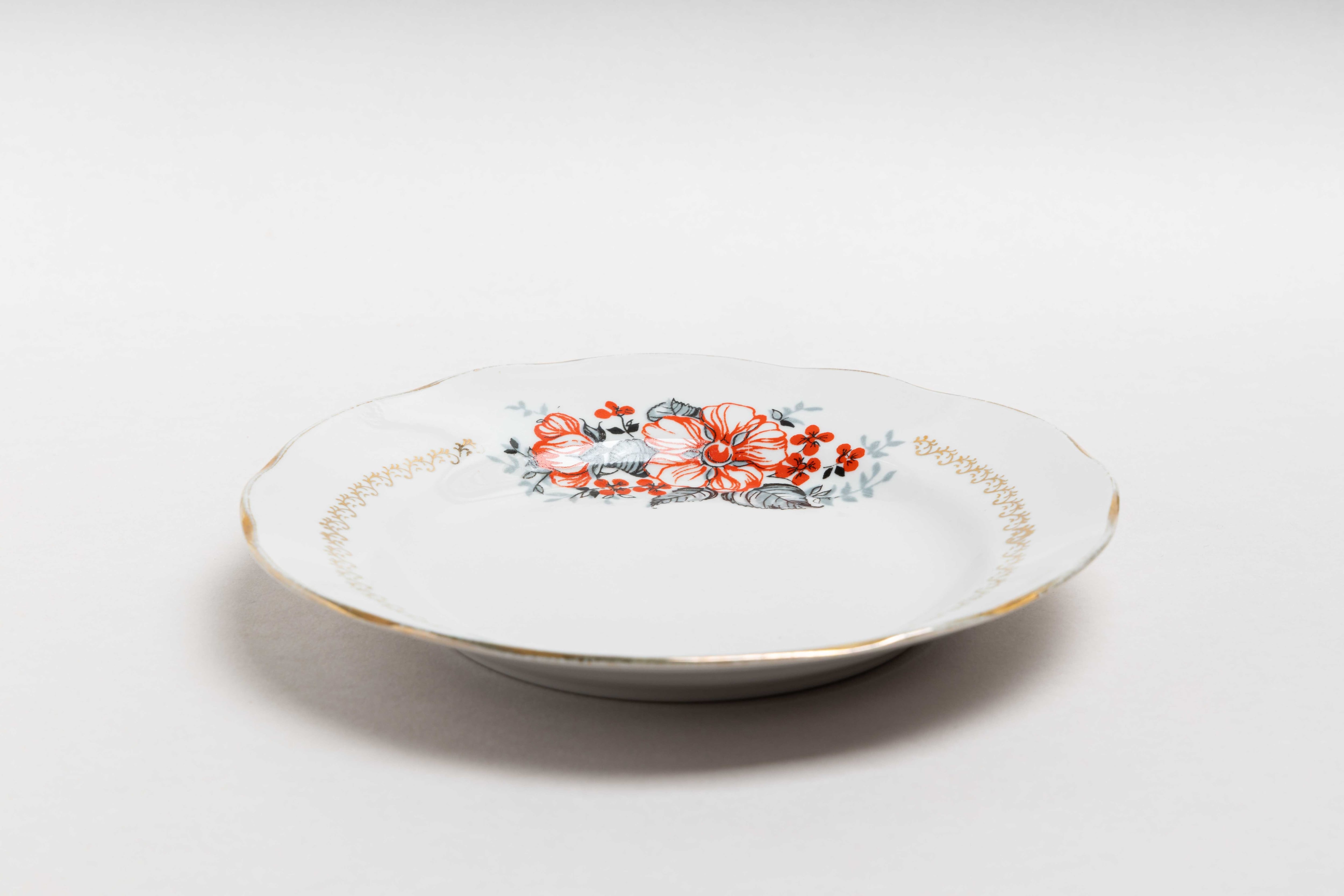 ヴィンテージ 金彩と花柄のお皿 リガ陶器工場 旧ソ連 0526