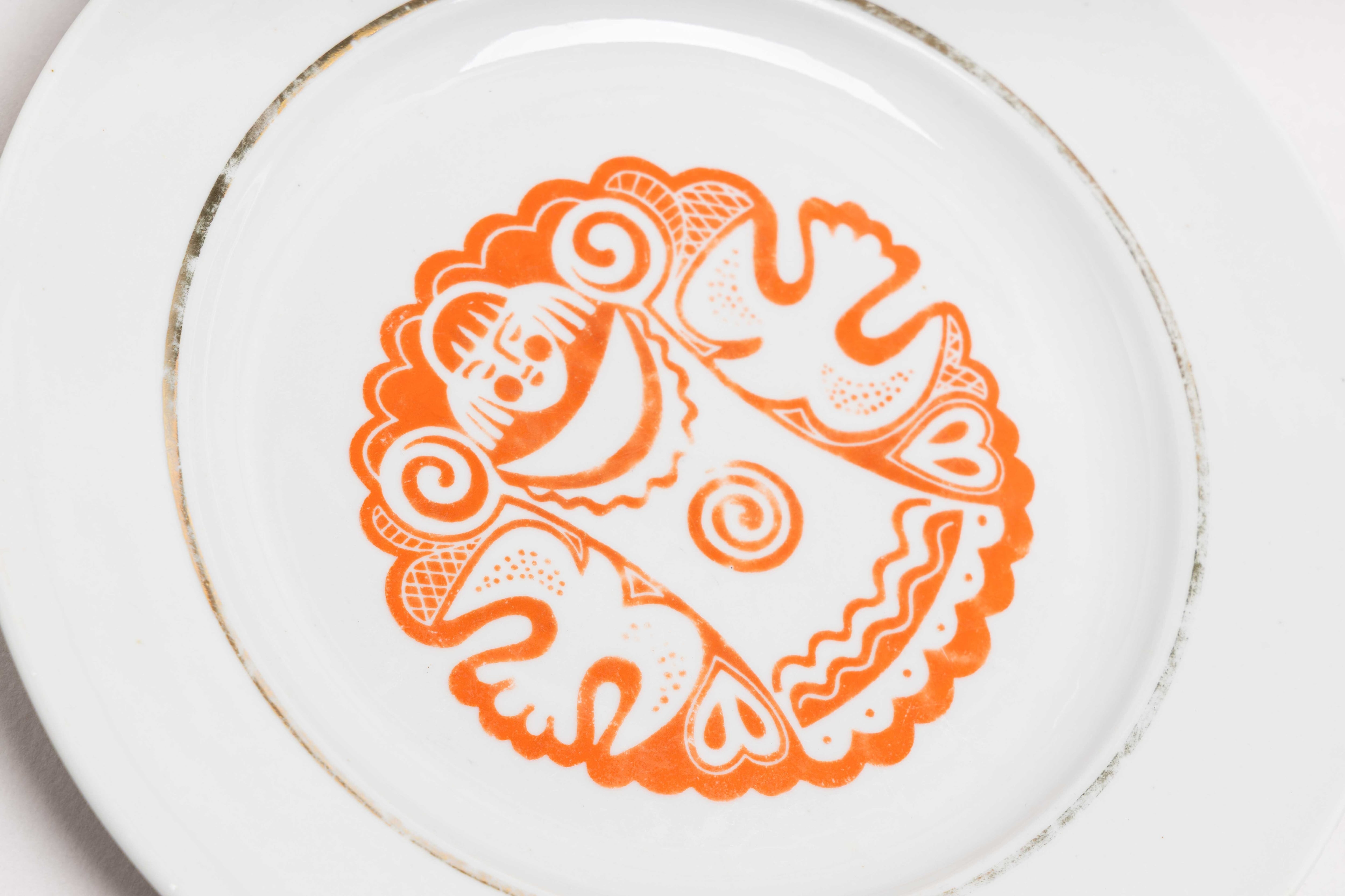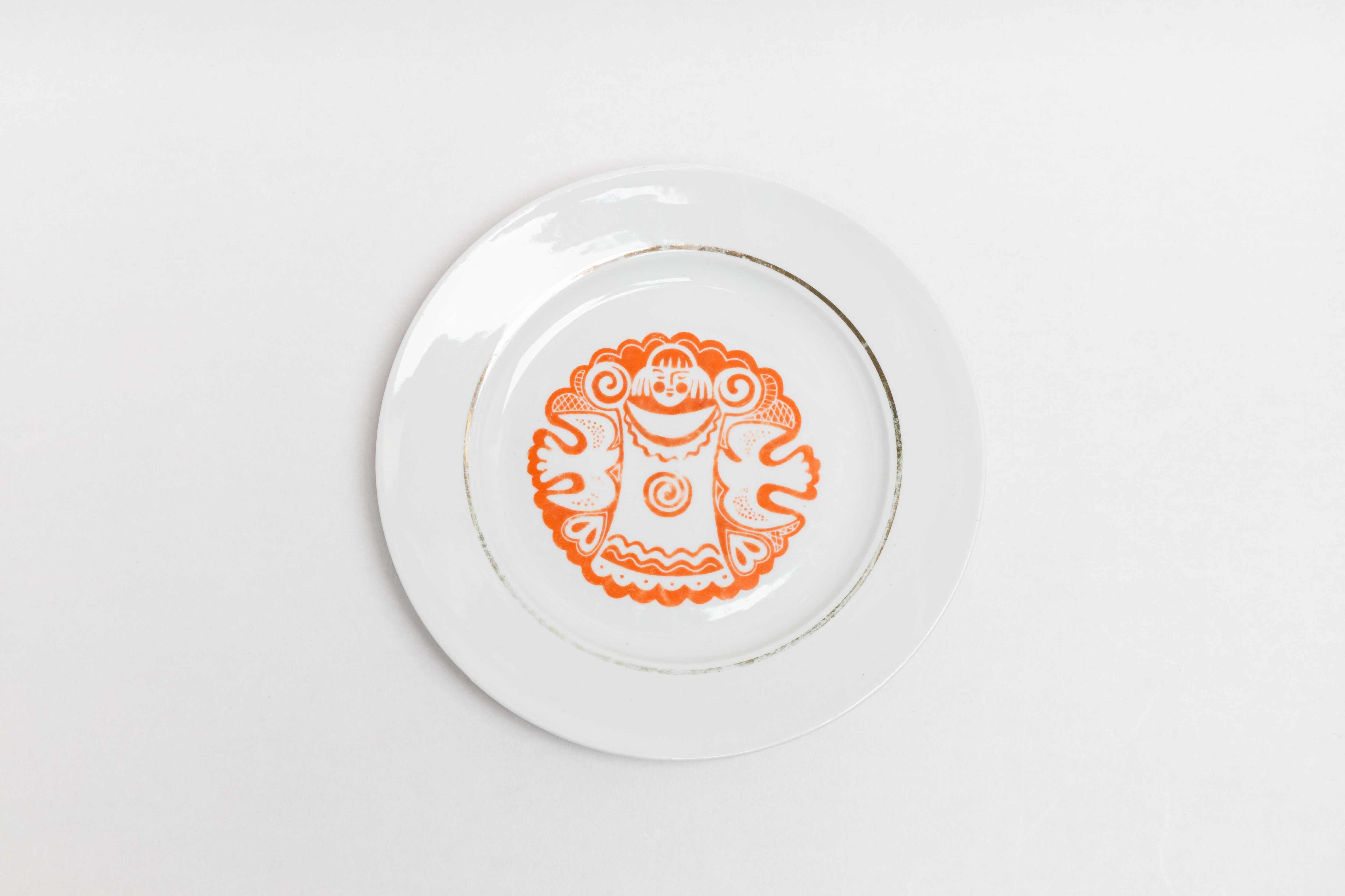 ソビエト時代のヴィンテージのお皿です。白のお皿の真ん中に民族調の女性と鳥が描かれています。置物のお皿としても素敵です。旧ソ連時代にウクライナのポルタヴァ磁器工場で1965-1991年に製造されました。 旧ソ連の市場で購入しました。