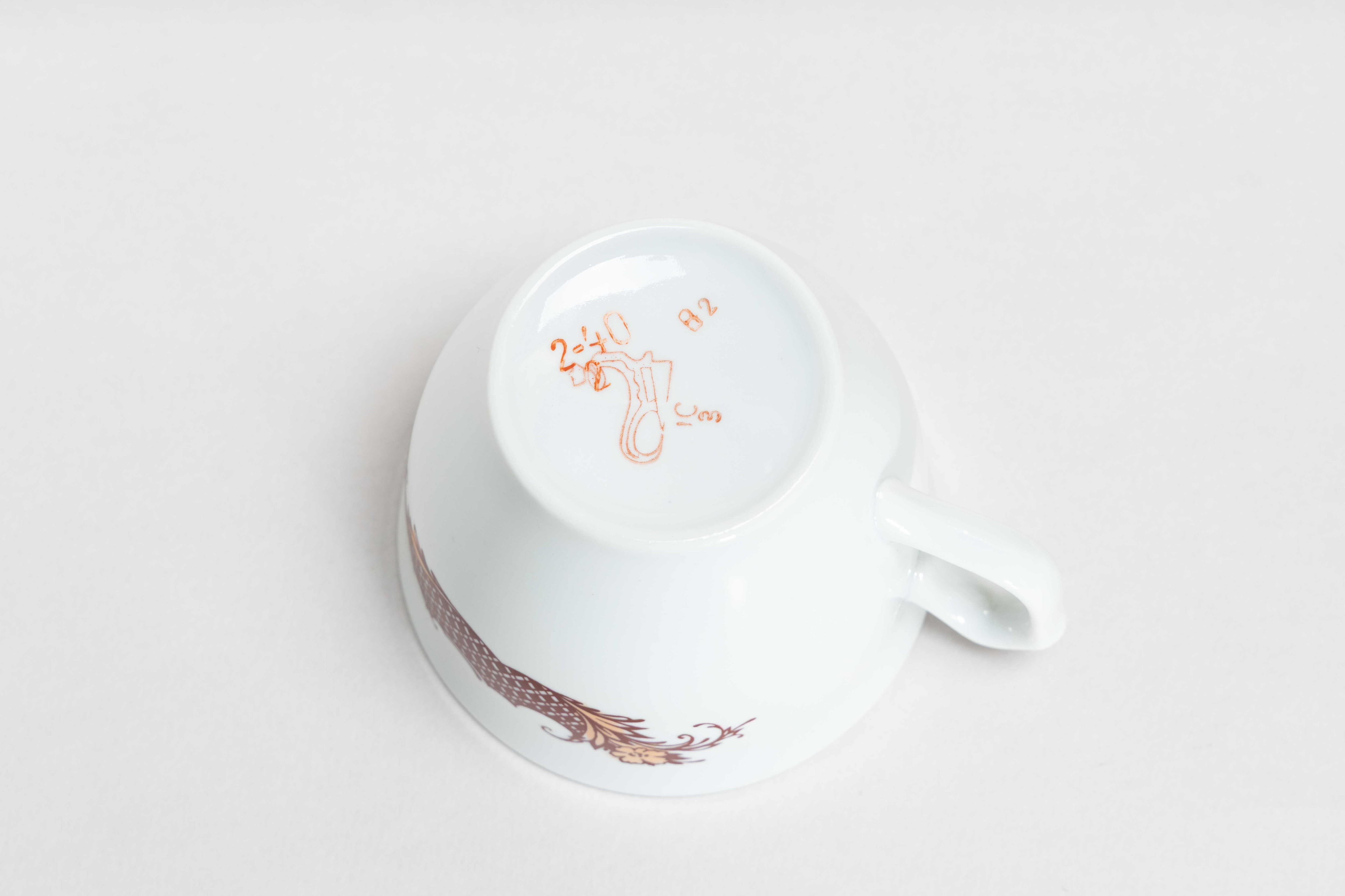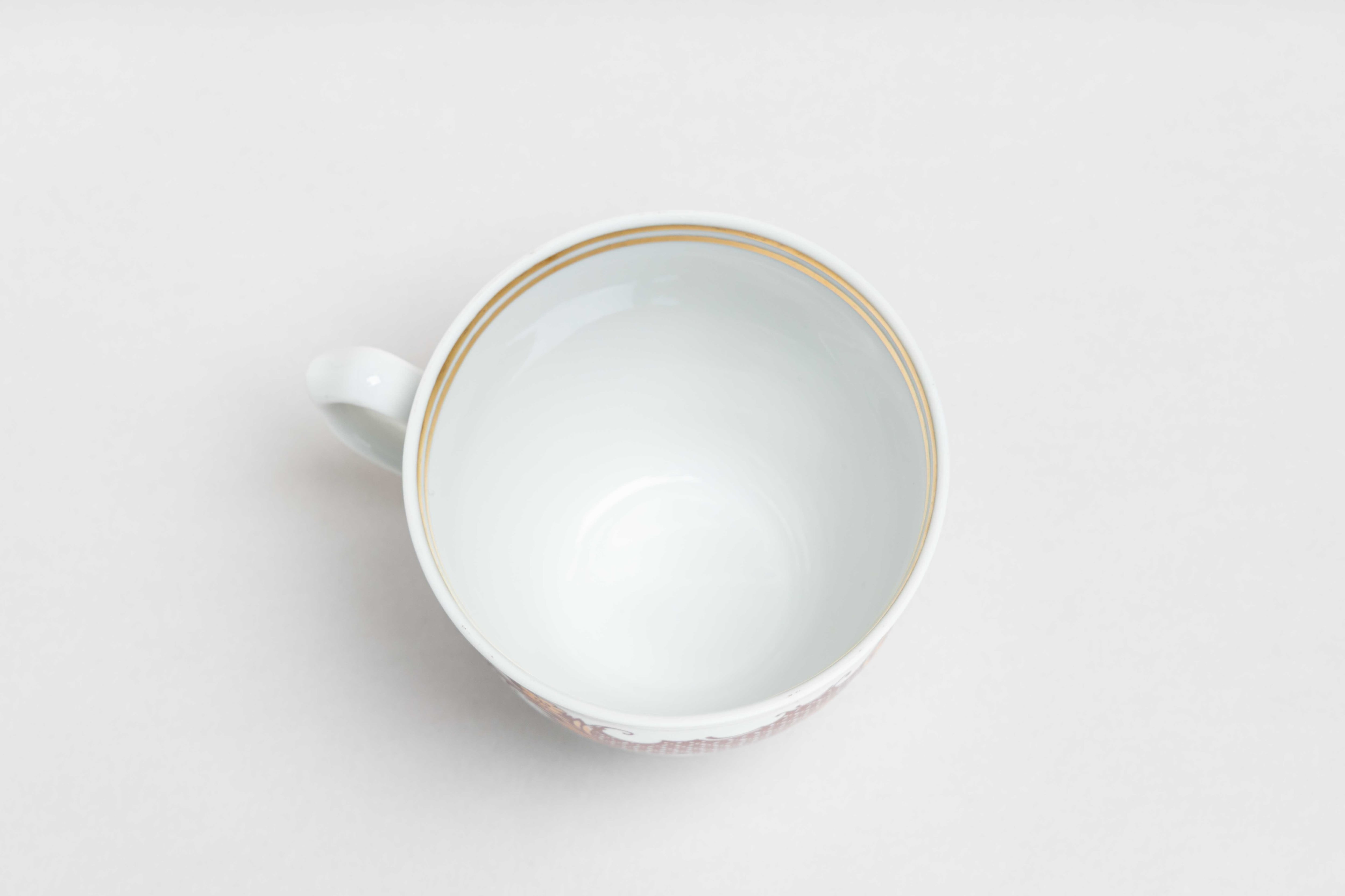 また、ソ連製は日本製などと違い、等級によって作りの丁寧さが違い、低い等級の物は、絵付けのムラがあったり、飲み口や底の多少の凹凸などがあったりします。