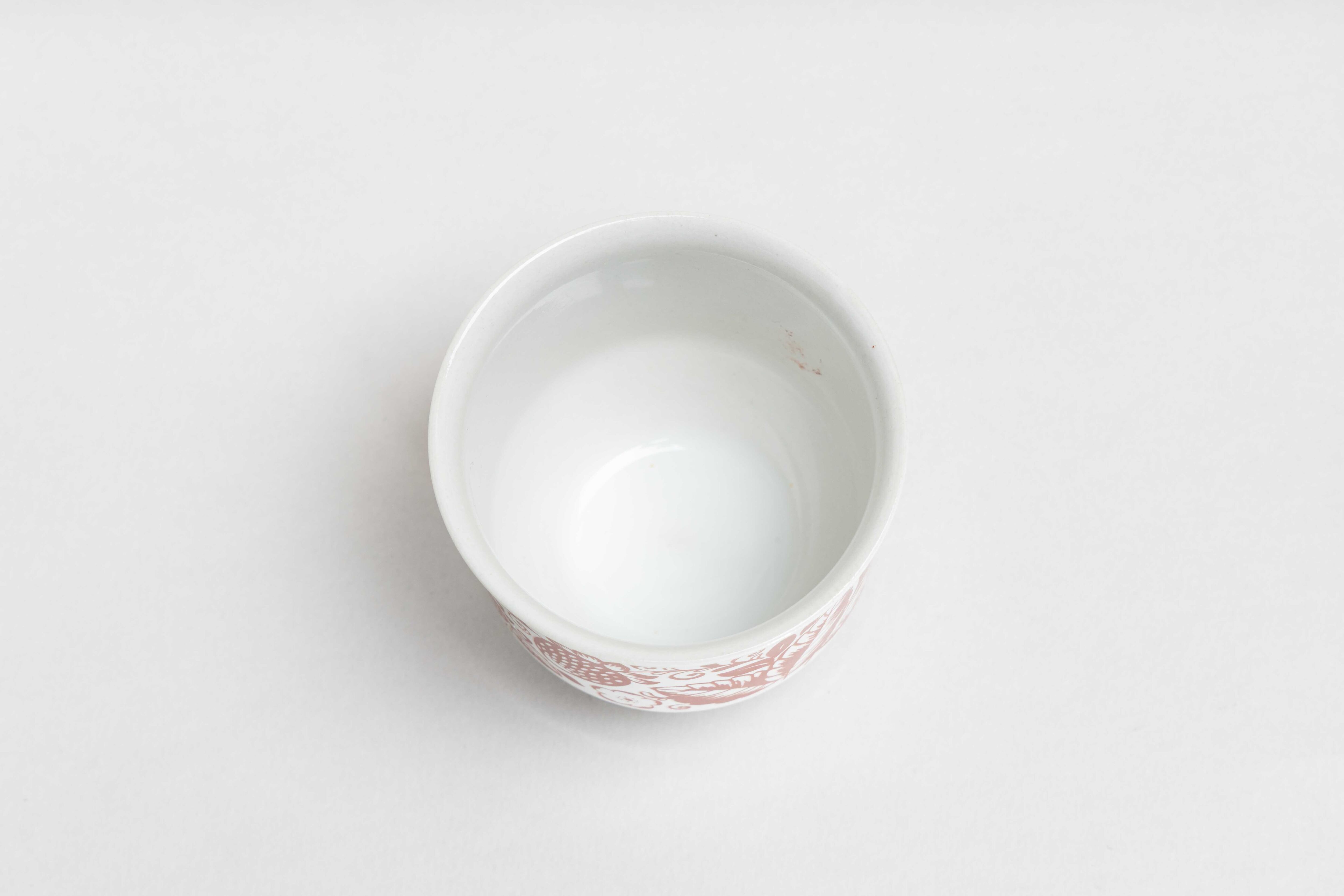 内側に柄の茶色の釉薬が付いているようです。また、カップの下側のボコボコも出荷時のものです。