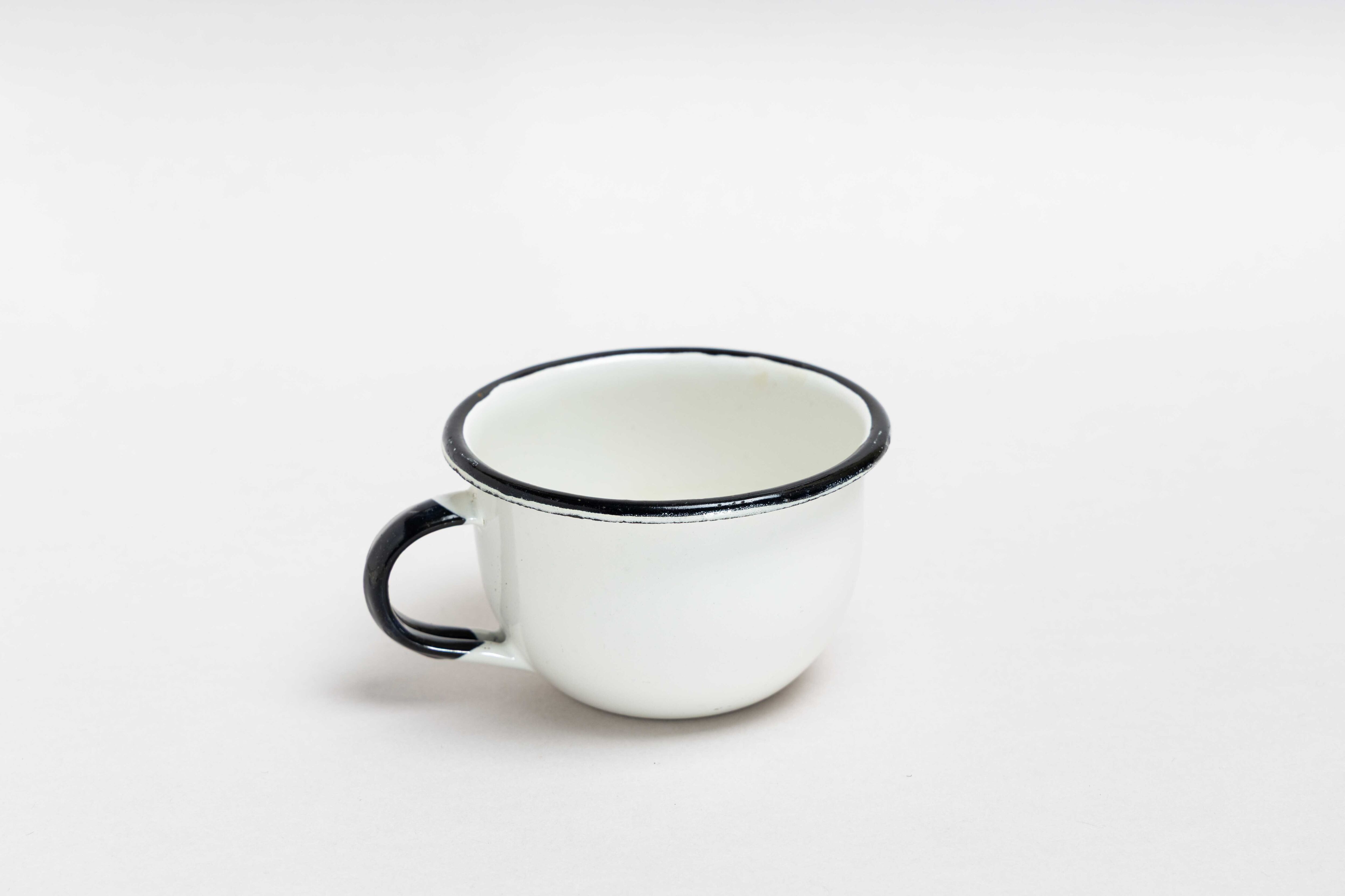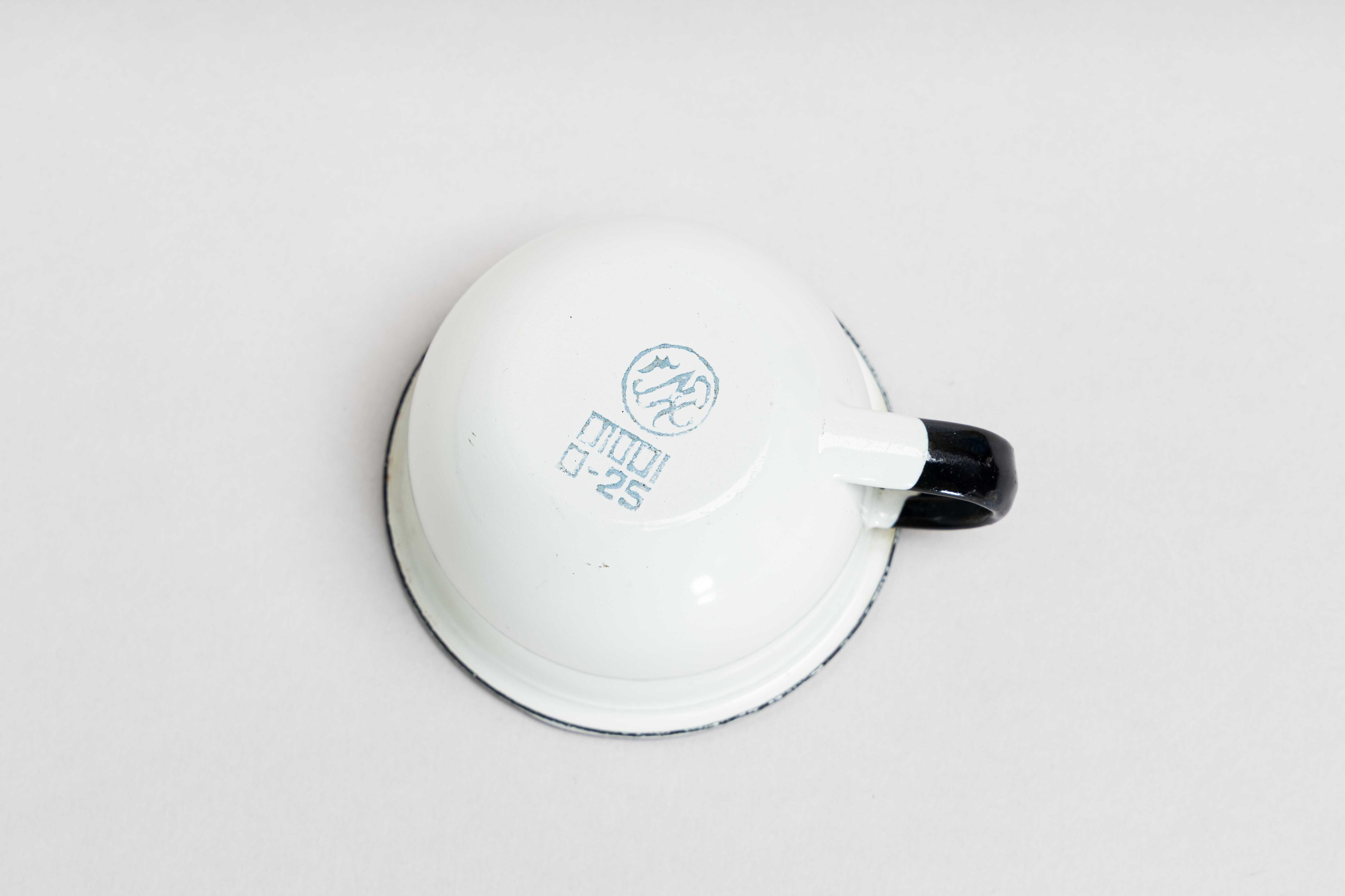 旧ソ連時代に生産されたホーロのカップです。シンプルな白のカップです。ソ連時代にキャンプなどで使われていたのではないでしょうか。小さい目が可愛らしいです。旧ソ連の市場で購入しました。