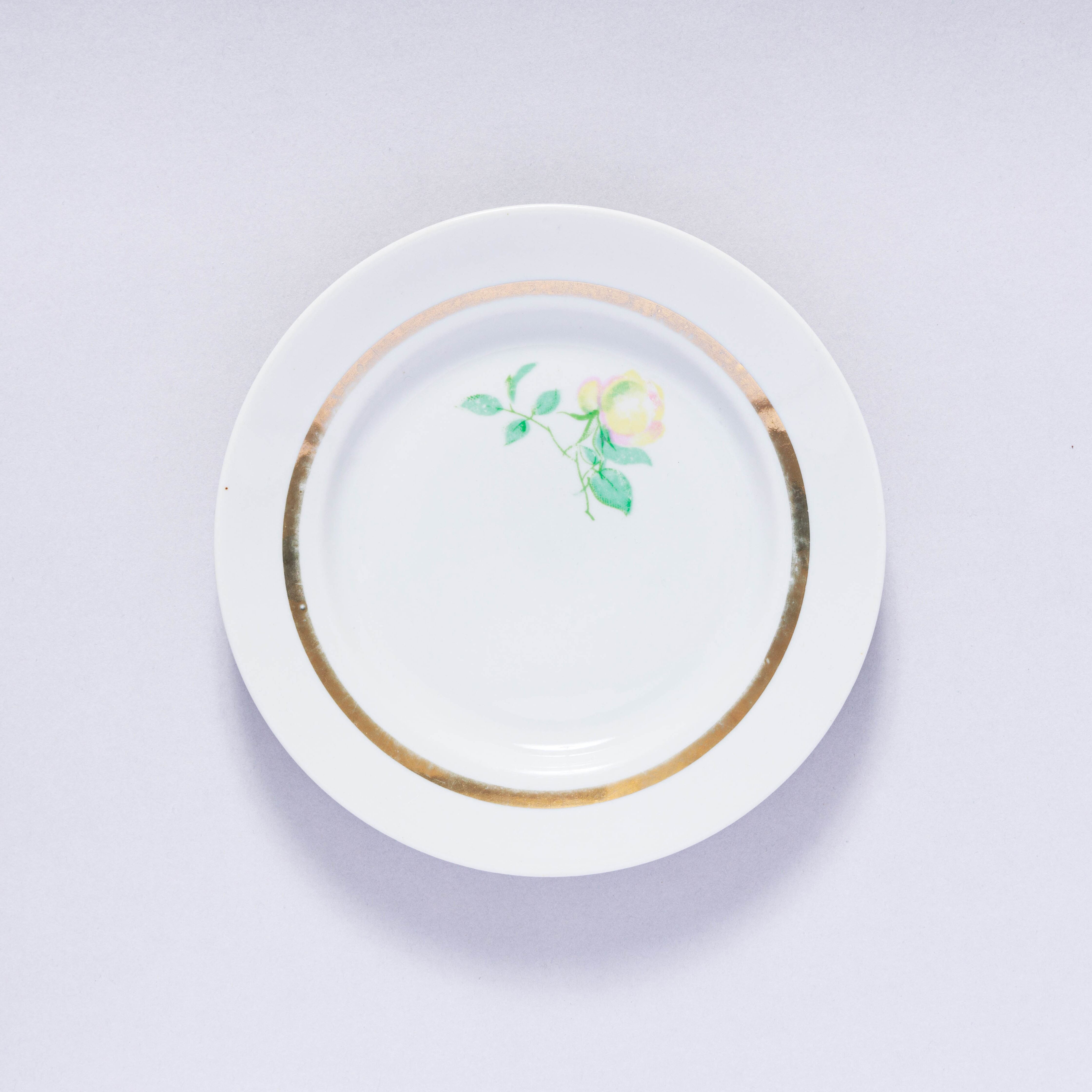 ヴィンテージのお皿です。旧ソ連時代にバシコルトスタン共和国のトゥイマジンスキー磁器工場で生産された花柄のレトロなプレートです。 トゥイマジンスキー工場の刻印は年代によって変化することなく同じものが使用されていました。レトロな花柄と金彩がとても上品な一枚です。旧ソ連の市場で購入しました。