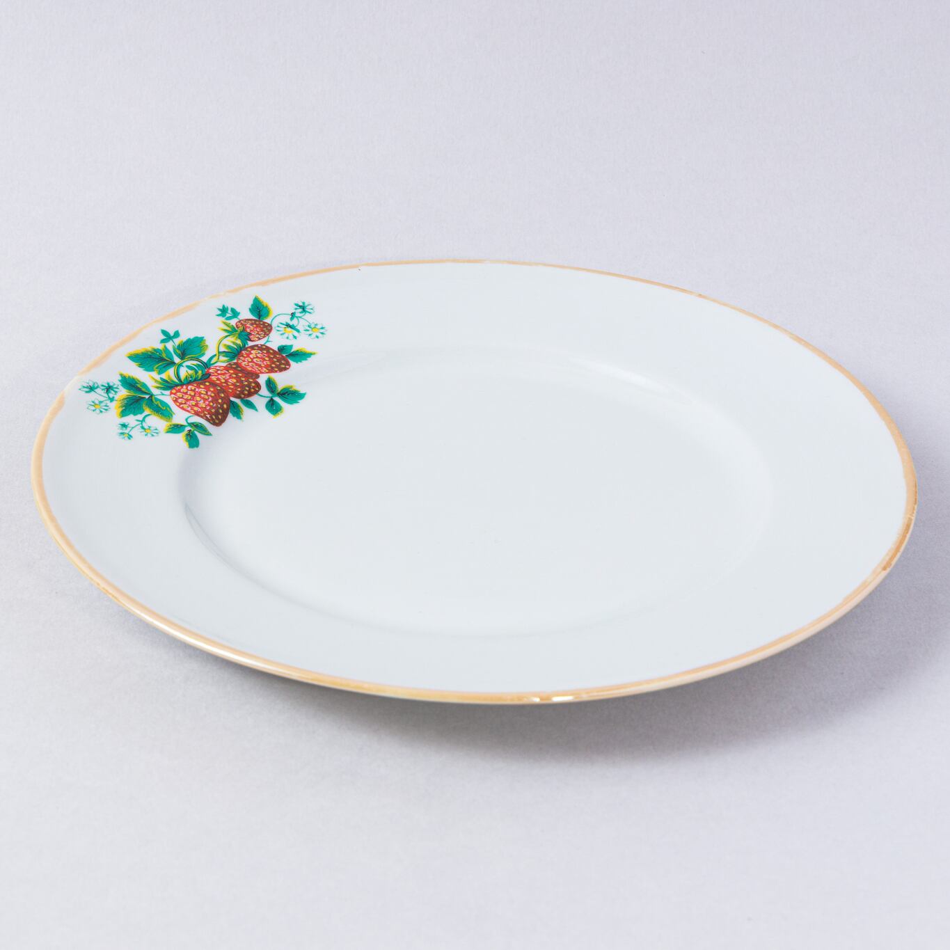 ヴィンテージのお皿です。旧ソ連時代に生産されたいちご柄のレトロなプレートです。控えめな柄の配置で料理を映えさせる一枚です。 ロシアのスヴェルドロフスクのボグダノビッチ磁器工場で1973-1991年に製造されました。旧ソ連の市場で購入しました。