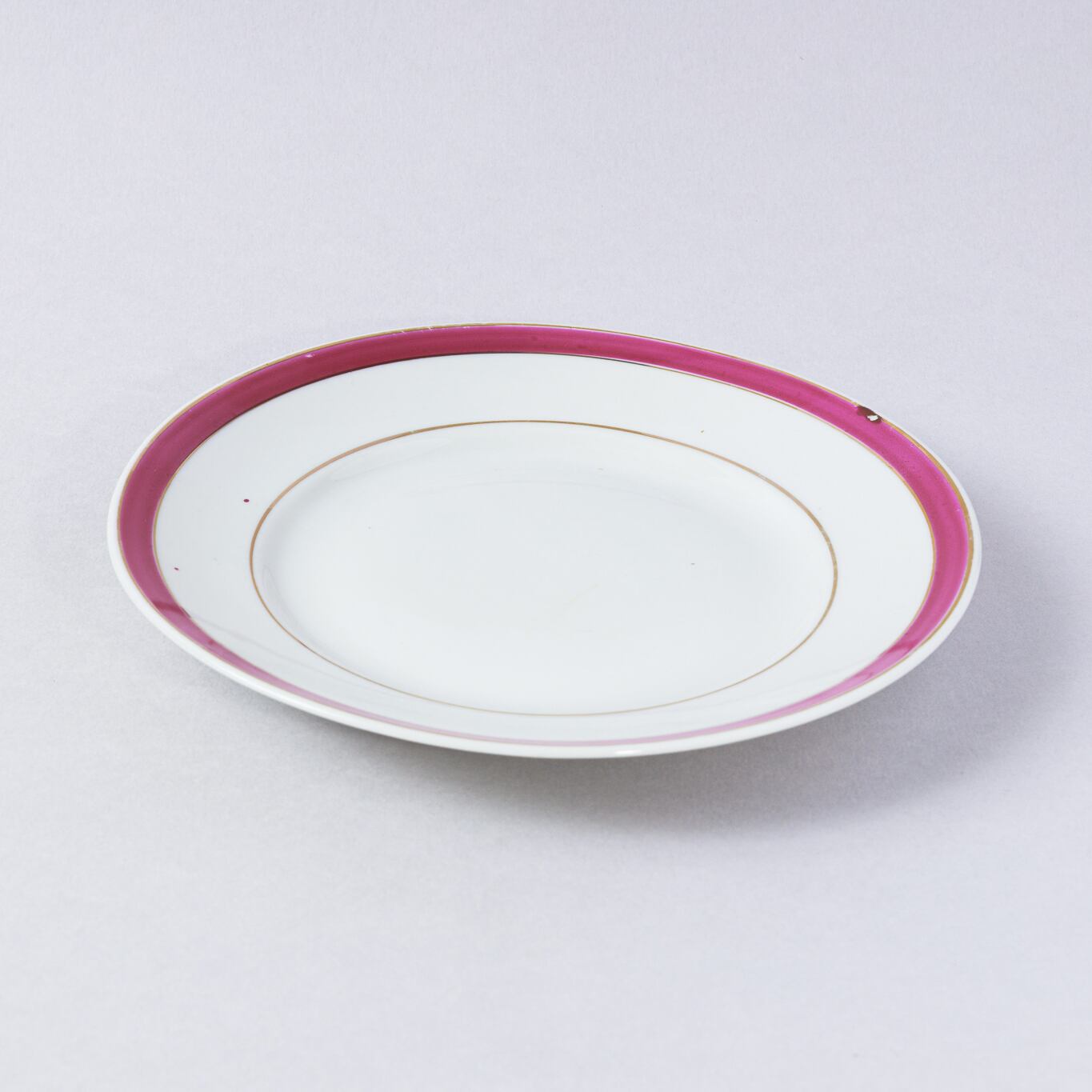 旧ソ連時代に生産されたシンプルなプレートです。縁のべに色が他にはない色味で素敵です。