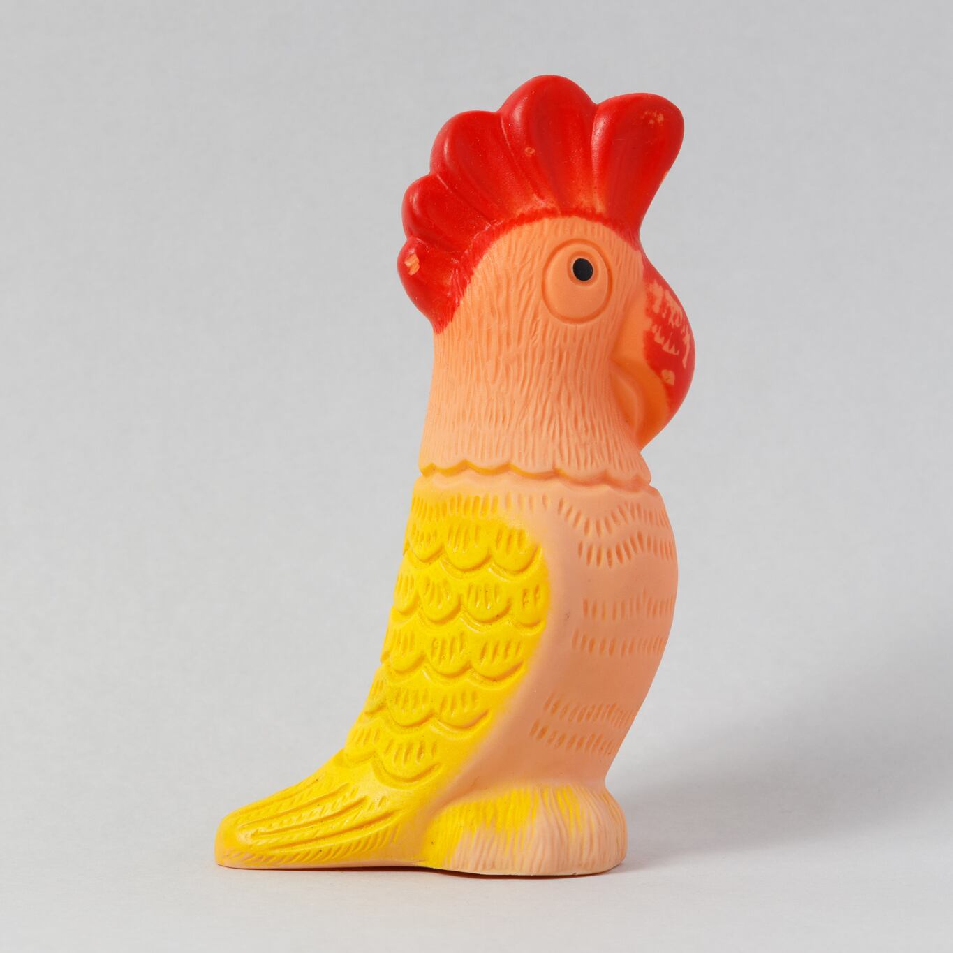 真っ赤なトサカが印象的なとりの人形です。旧ソ連製のソフビの人形です。1980年代頃の物と思われます。旧ソ連の市場で購入しました。