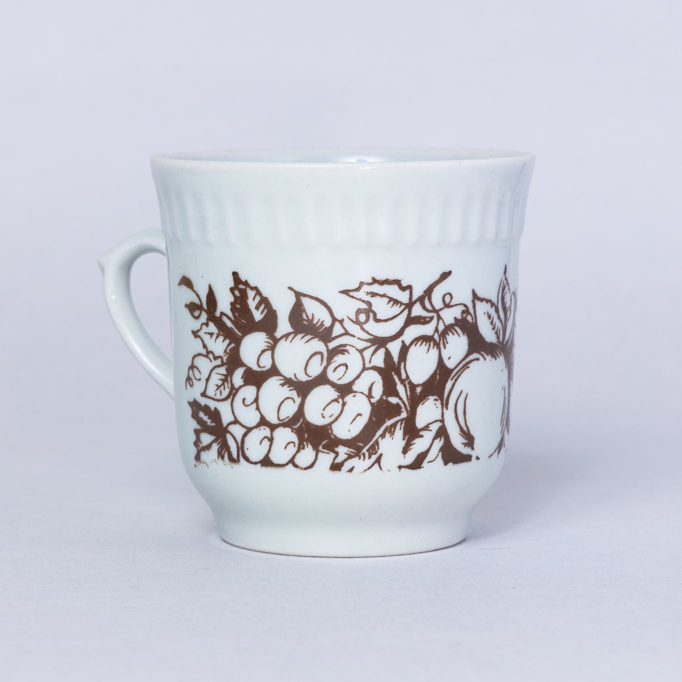 ヴィンテージカップです。旧ソ連時代に生産されたフルーツをモチーフにしたカップです。茶色のみで描かれているのでシックな印象で素敵です。1970-1991年にウクライナのゴロドニツキー磁器工場で製造されました。旧ソ連の市場で購入しました。
