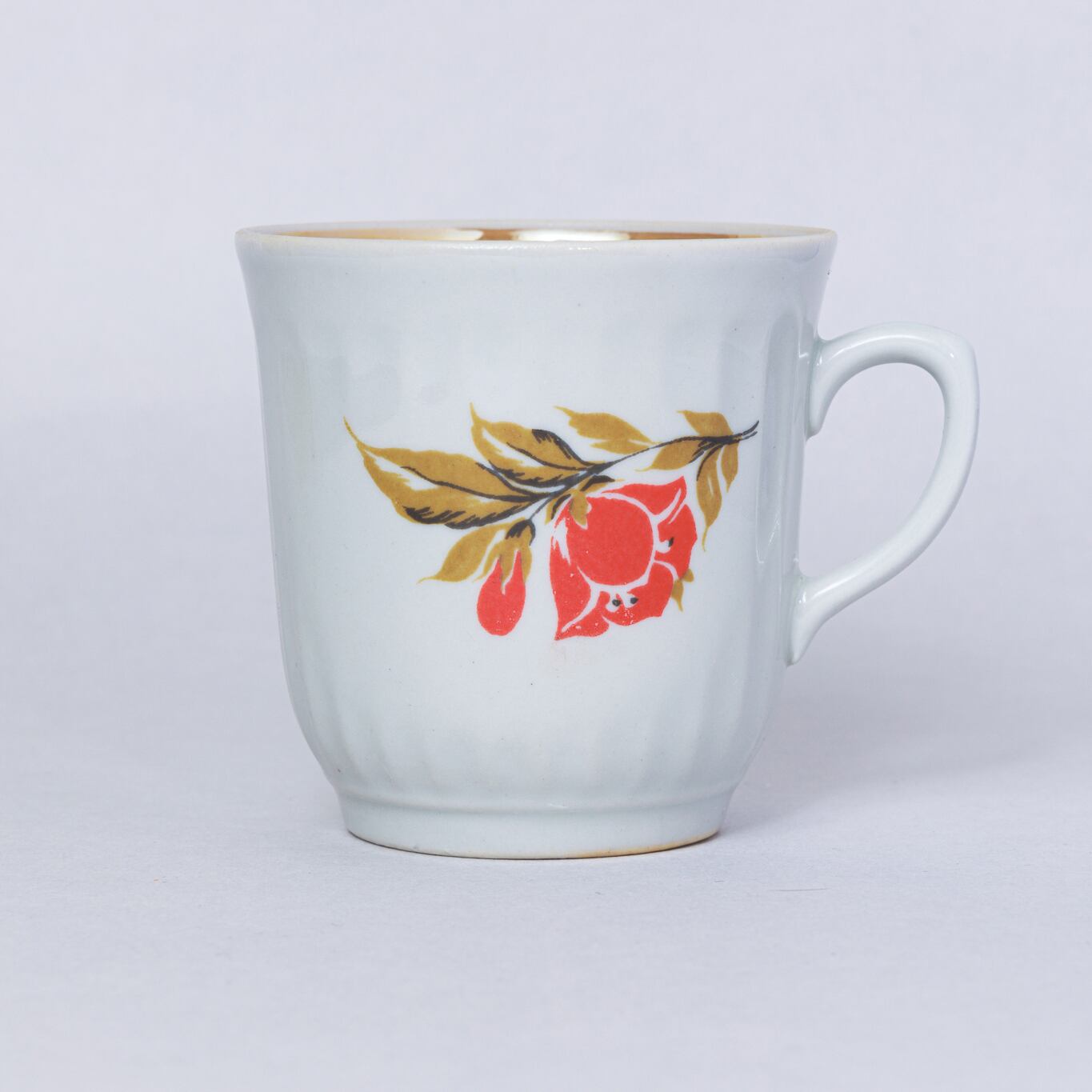 ヴィンテージカップです。旧ソ連時代に生産された花をモチーフとしたシンプルですが印象的でレトロなカップです。ウクライナのスームィ磁器工場で1974-1991年に製造されました。旧ソ連の市場で購入しました。