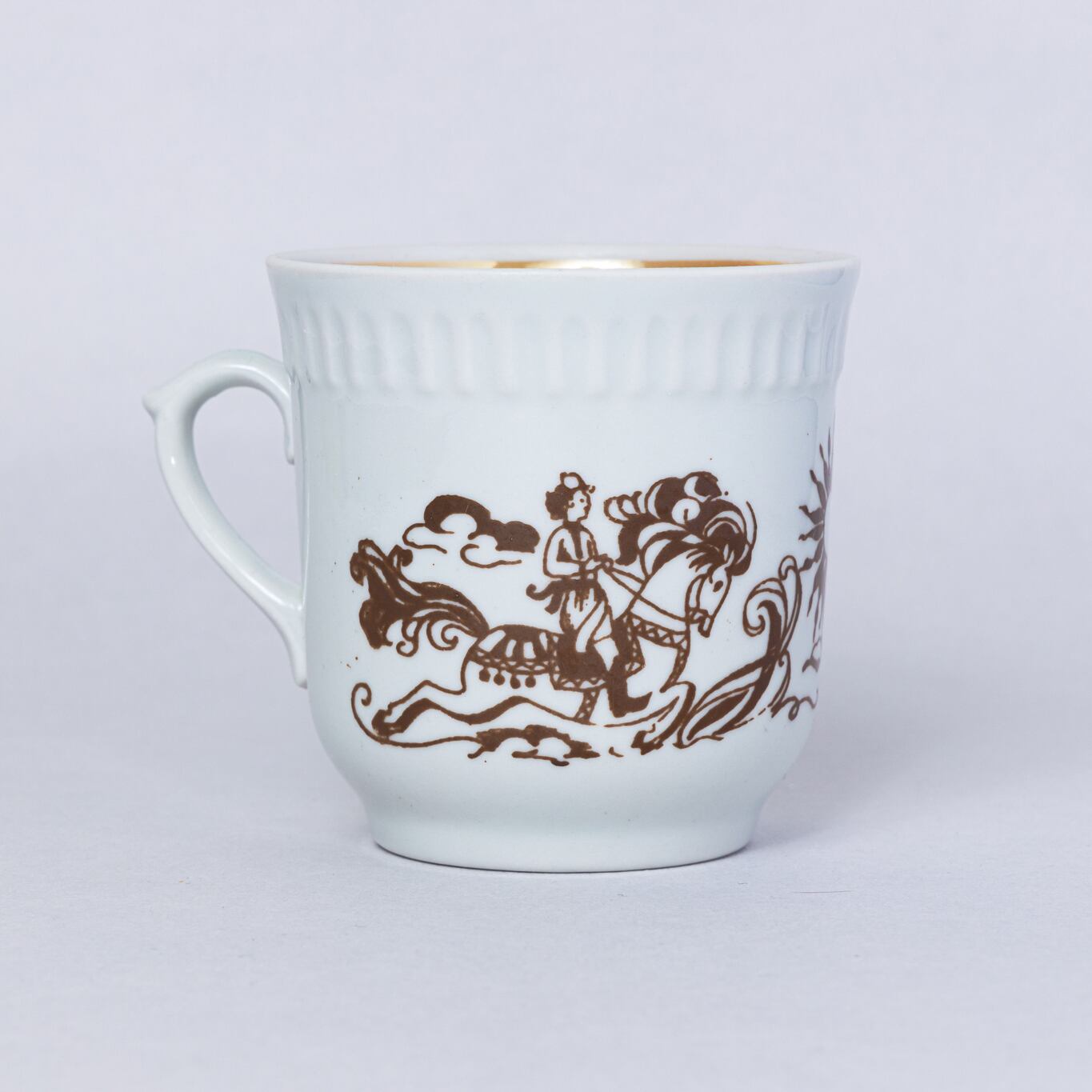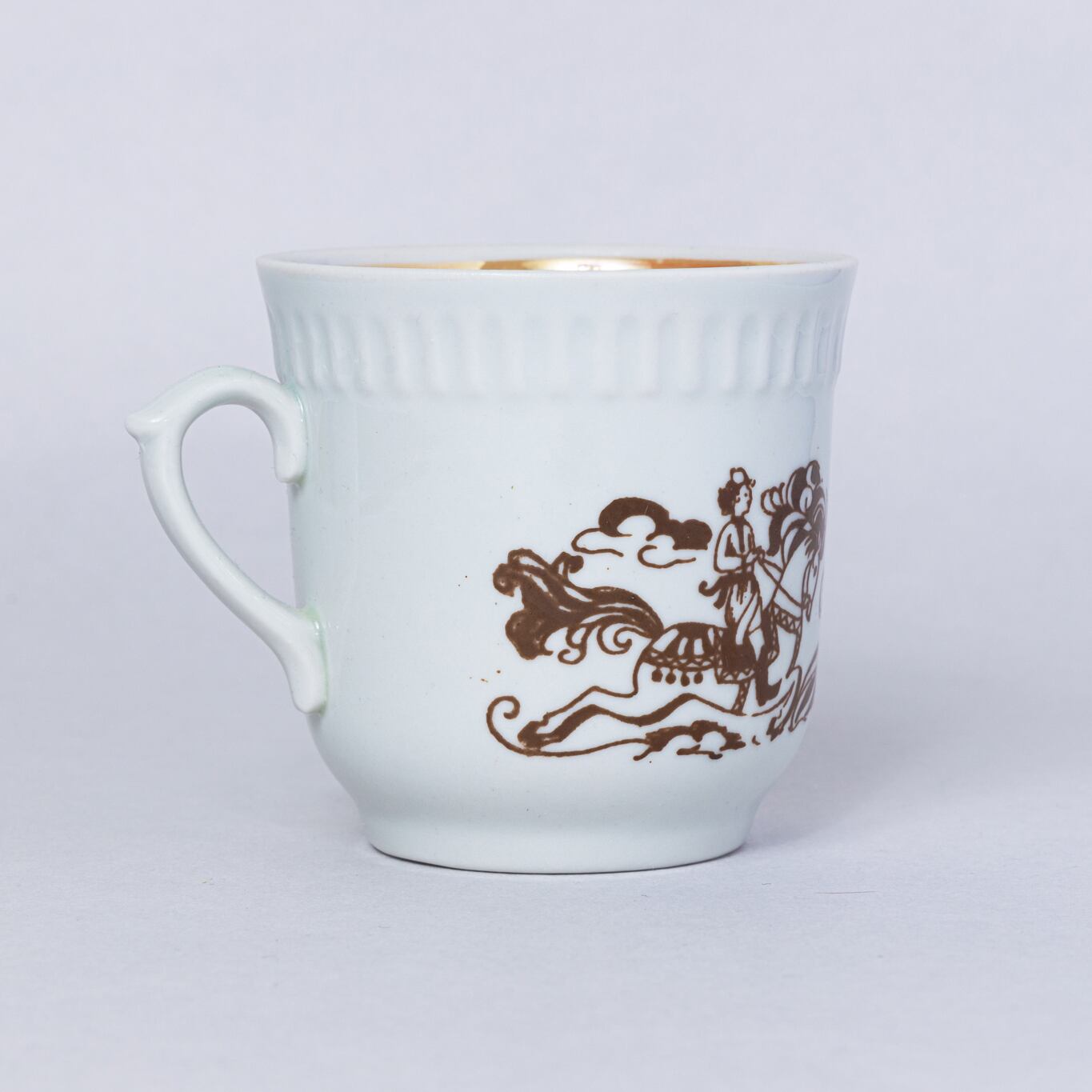 ヴィンテージカップです。旧ソ連時代に生産された物語の一幕が描かれている非常に可愛いカップです。ウクライナのゴロドニツキー磁器工場で1970-1991年に製造されました。旧ソ連の市場で購入しました。