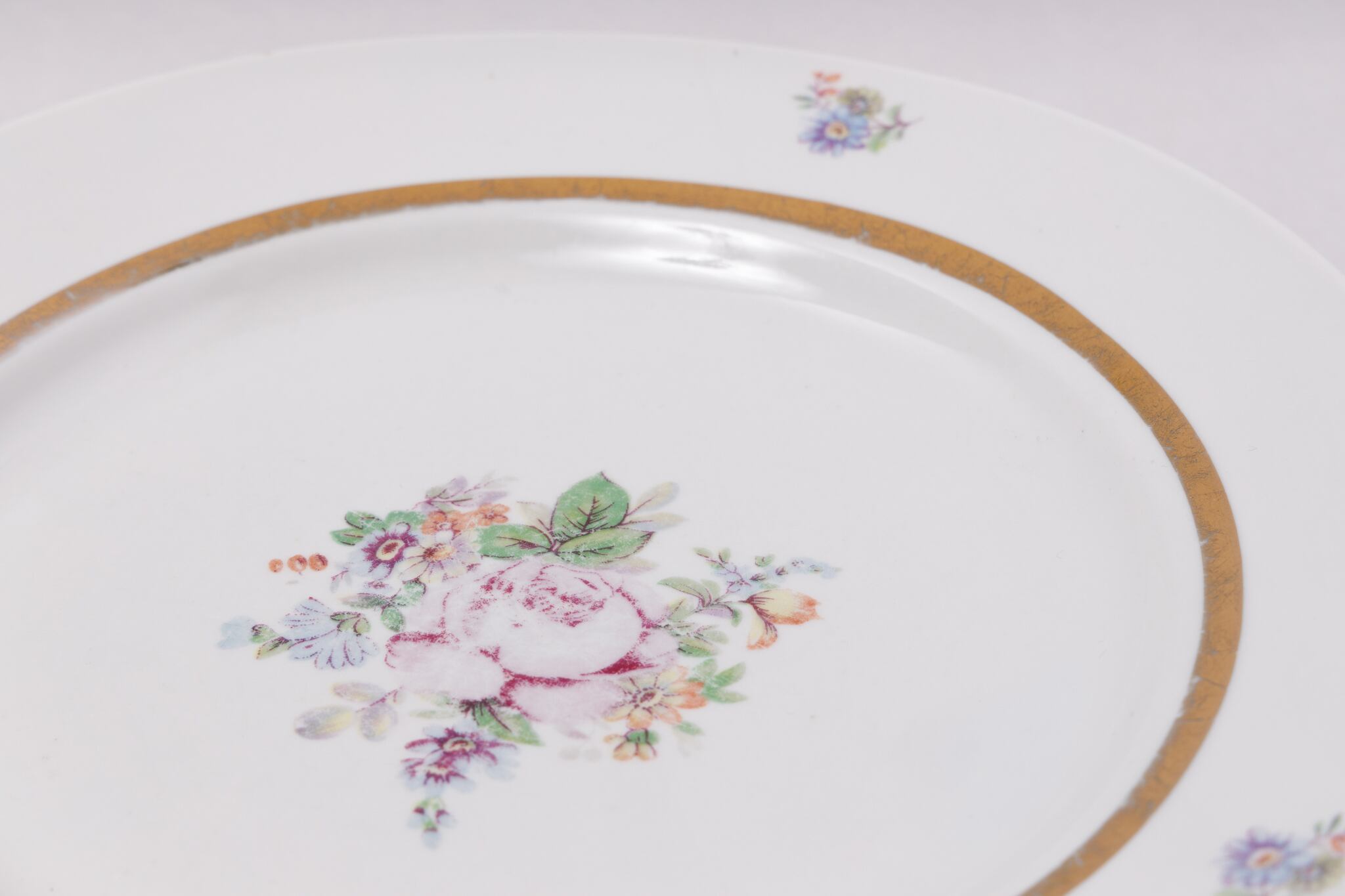 ヴィンテージのお皿です。旧ソ連時代に生産された花をモチーフとしたレトロなプレートです。ブーケのような花があしらわれ、金彩との相性も抜群で当時らしい一枚です。ロシアのクラスノダール磁器工場チャイカで1960-1992年に製造されました。 旧ソ連の市場で購入しました。