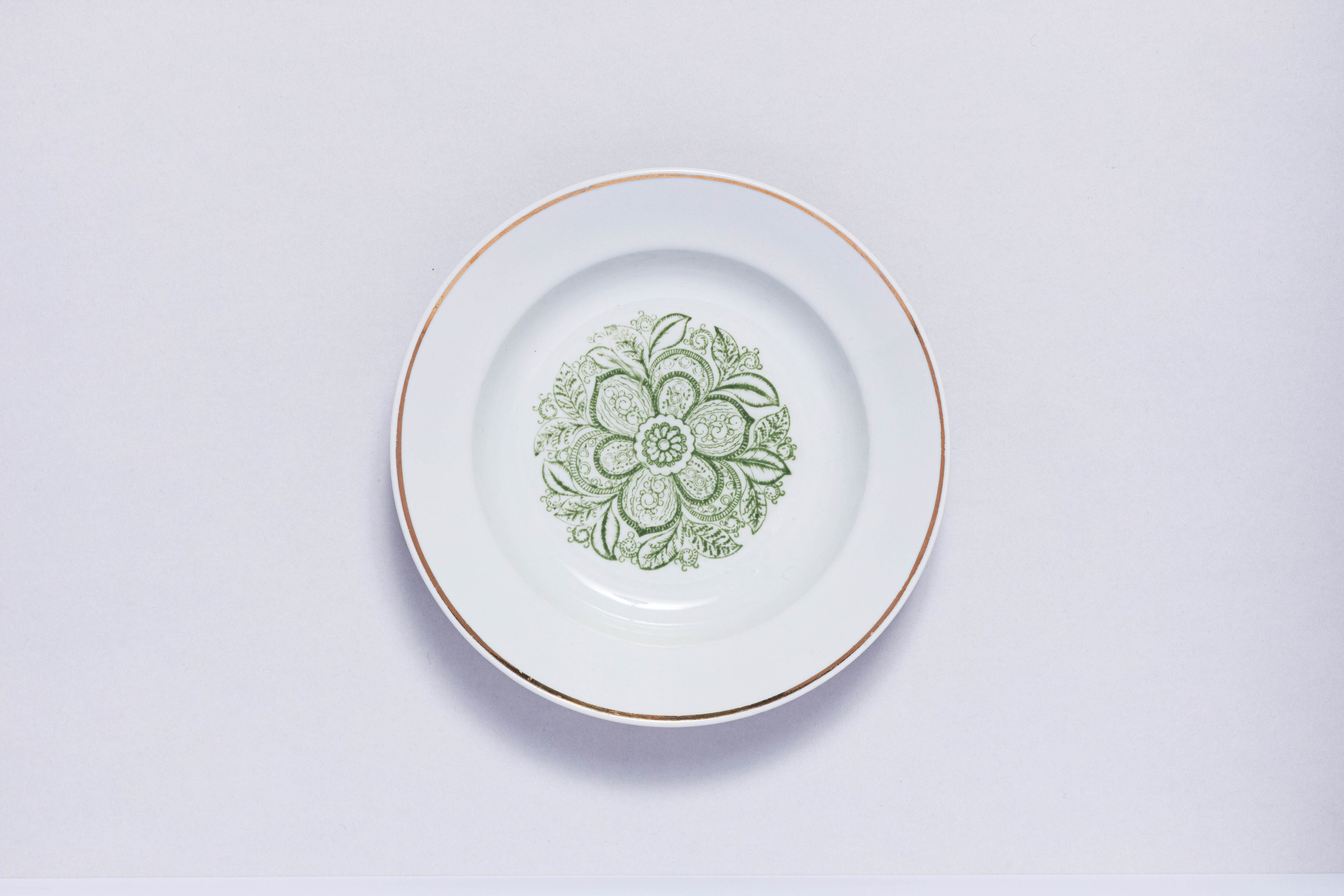 旧ソ連時代に生産された植物等をモチーフとした幾何学模様柄のレトロなプレートです。抽象化された花柄がインパクト抜群の素敵な一枚です。ソ連らしい独特な花柄図案です。ロシアのノブゴロドのプロレターリ磁器工場で1976-1991年に製造されました。 旧ソ連の市場で購入しました。