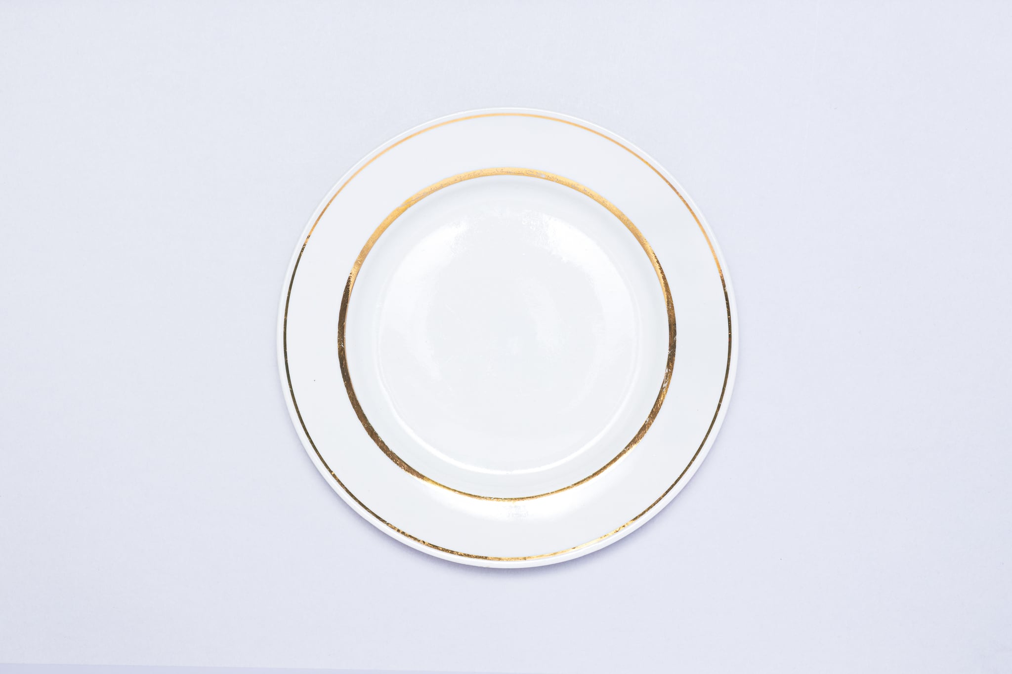 ヴィンテージのお皿です。旧ソ連時代に生産されたプレートです。ロシアのノブゴロドのプロレターリ磁器工場で1976-1991年に製造されました。 白に金彩が2本描かれているシンプルながら、豪華さも感じるクラシックなプレートです。シンプルなので、日々使えそうな一枚です。旧ソ連の市場で購入しました。