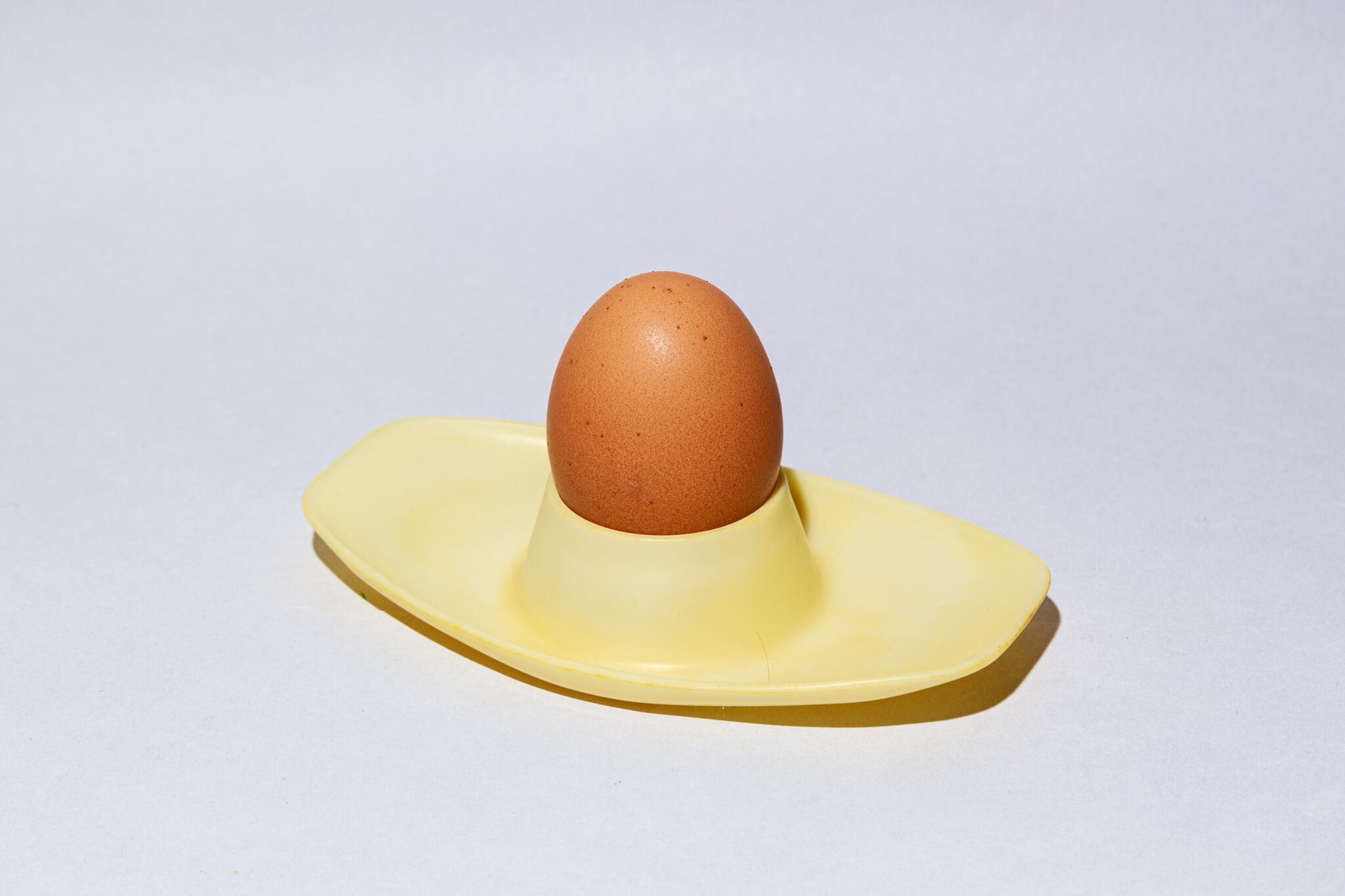 ソ連時代に使われていたプラスチックのゆで卵置きです。ソ連らしいチープで大衆的な感じがたまらないデザインです。陶器のゆで卵置きよりも家庭ではよく使われていたようです。回りには卵の殻を置くようになっており、ありそうでないデザインです。なんとなくレトロフューチャーな趣を感じられます。旧ソ連の市場で購入しました。