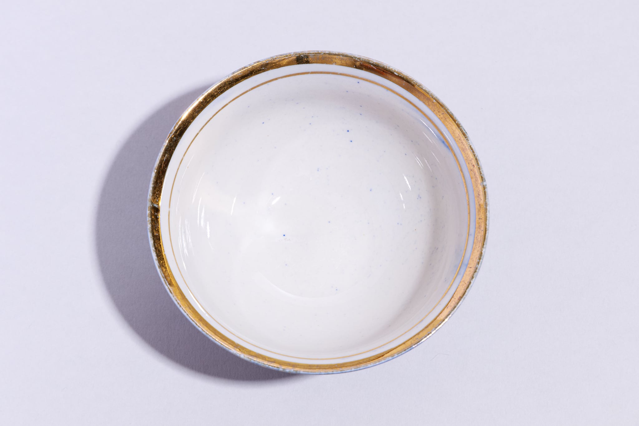 また、ソ連製は日本製などと違い、等級によって作りの丁寧さが違い、低い等級の物は、絵付けのムラがあったり、飲み口や底の多少の凹凸などがあったりします。