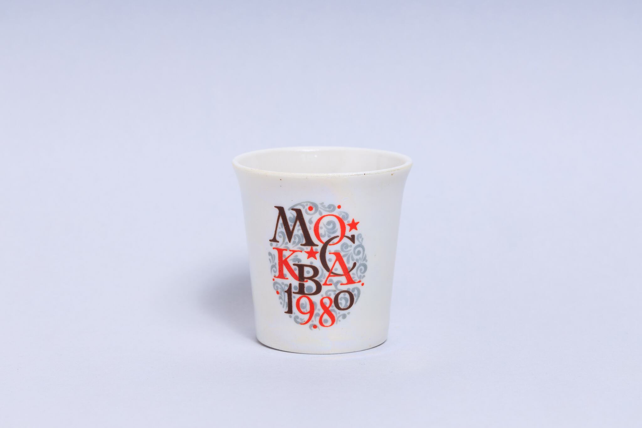 1980年のモスクワオリンピック記念ミーシャのヴィンテージ陶器ショットグラスです。ミーシャとモスクワ1980とキリル文字で書かれているショットグラスは白とキラキラする螺鈿のような仕上がりになっています。当時これでウオッカやコニャックなどを飲んでたのでしょう。とても可愛らしいです!旧ソ連の市場で購入しました。