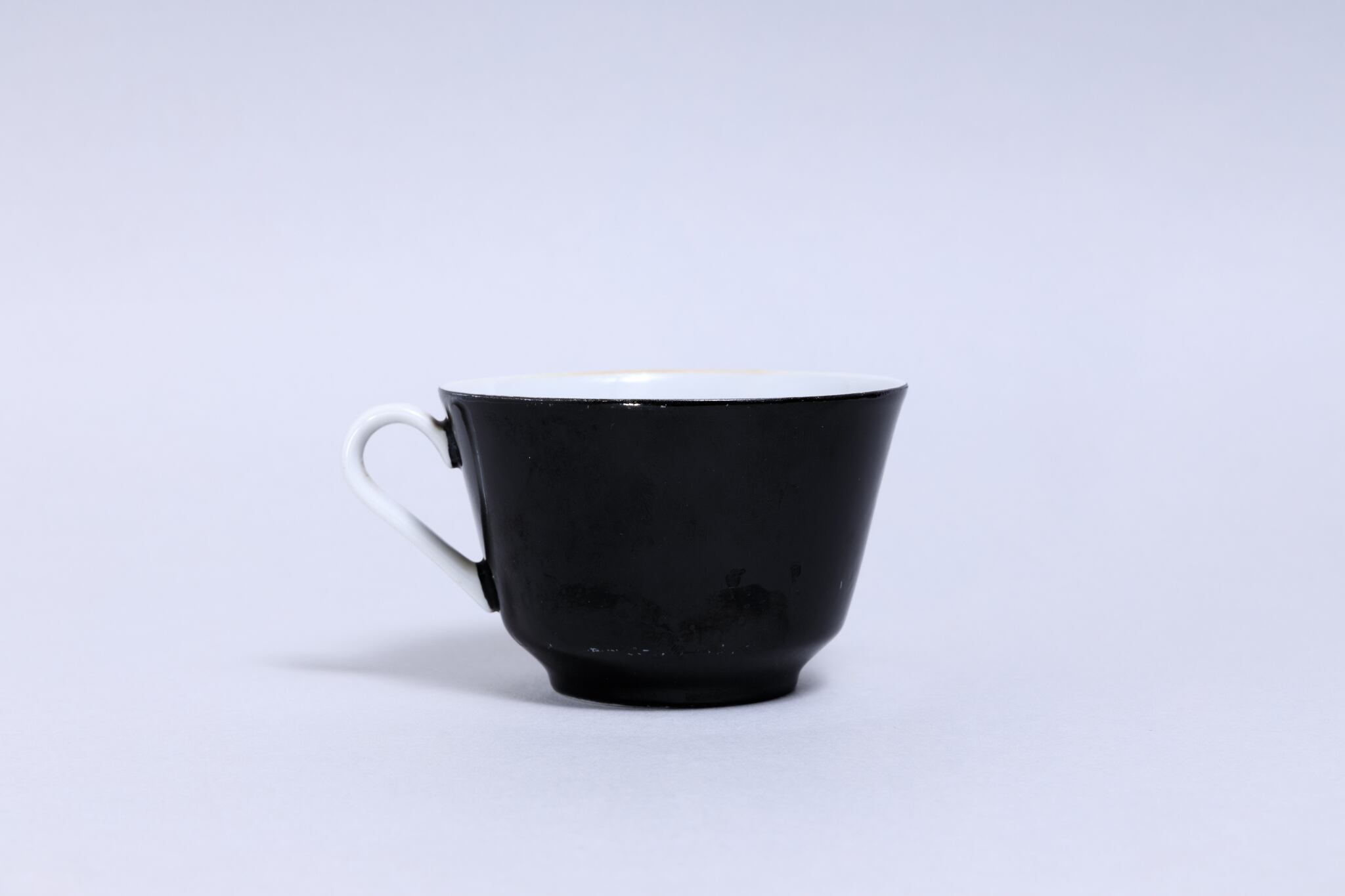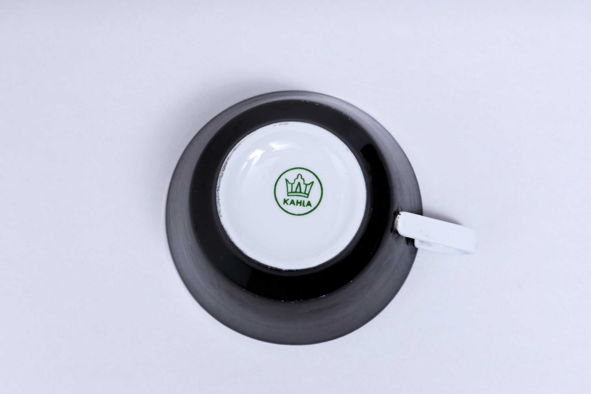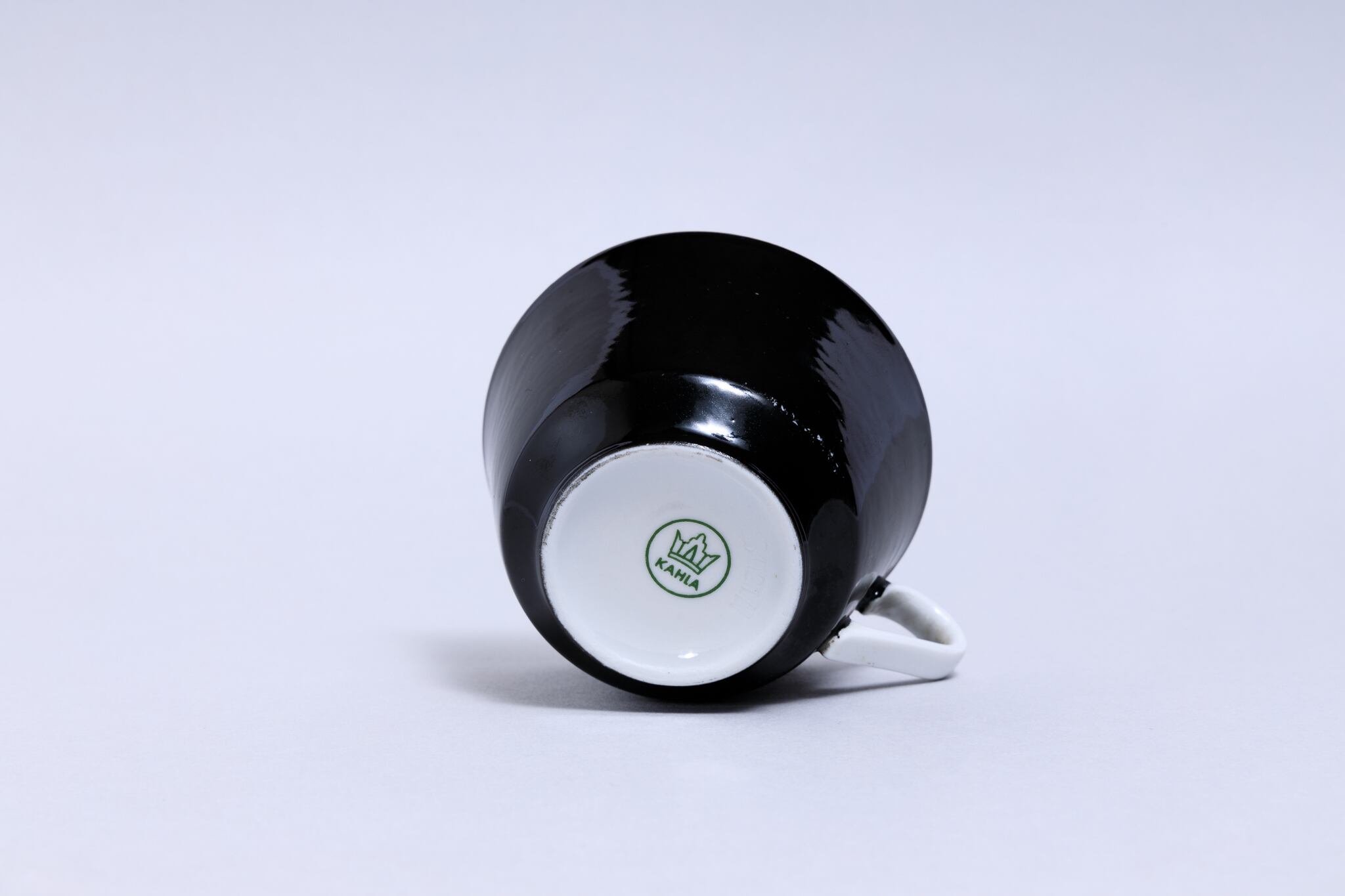 ヴィンテージのカップです。東ドイツ時代にkahla社で生産された真っ黒なカップです。磁器製で真っ黒というのが珍しく、シックで他にない一客です。並々ならぬセンスを感じます。 旧ソ連の市場で購入しました。