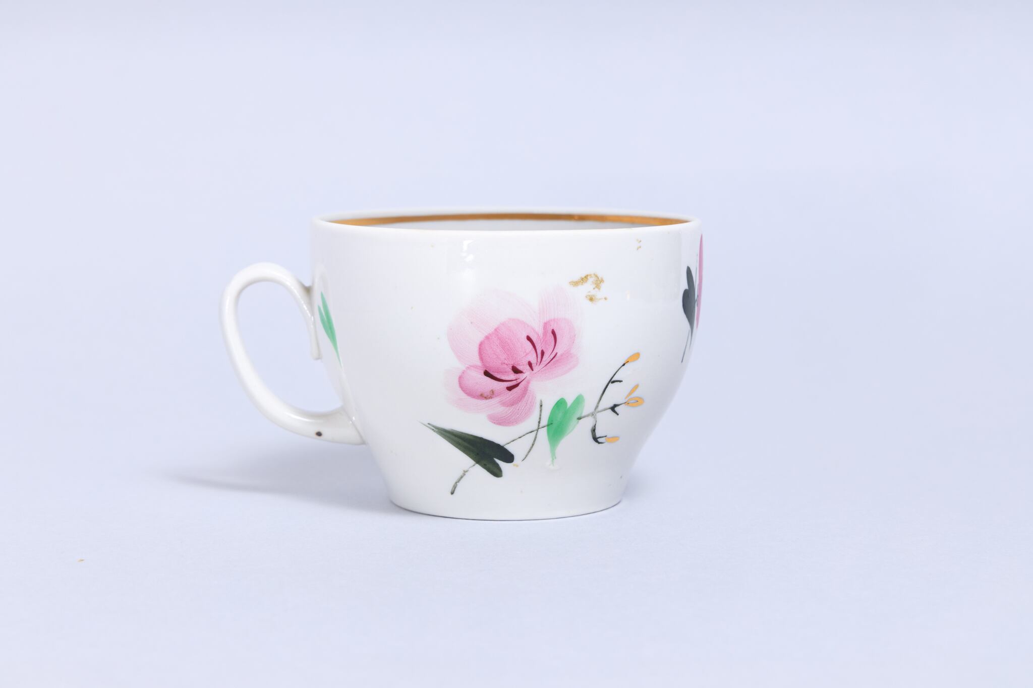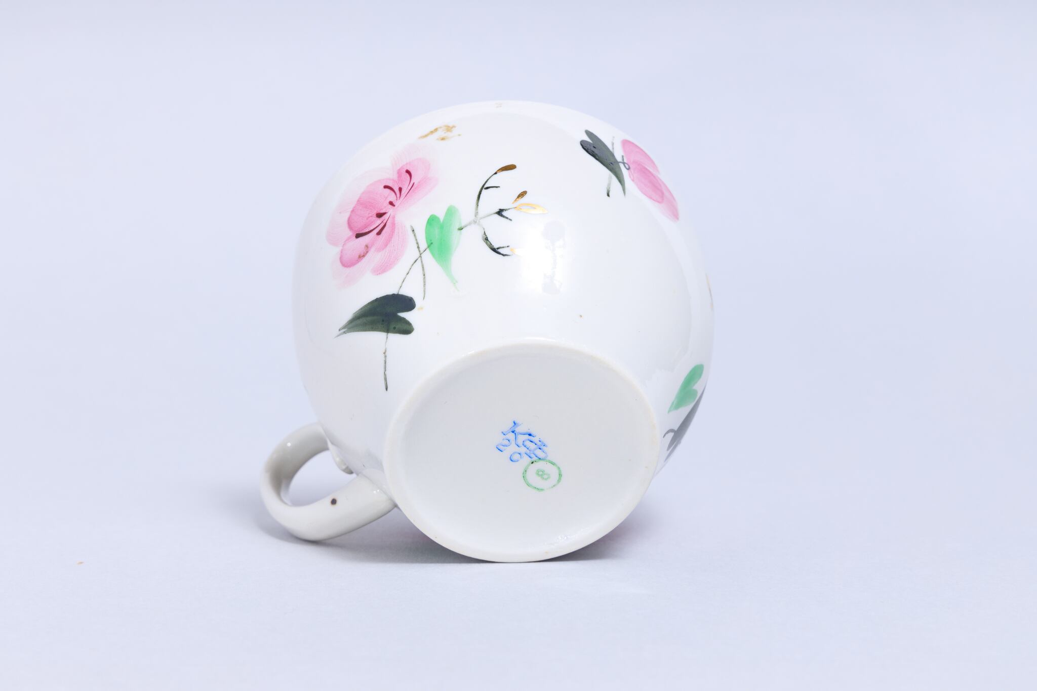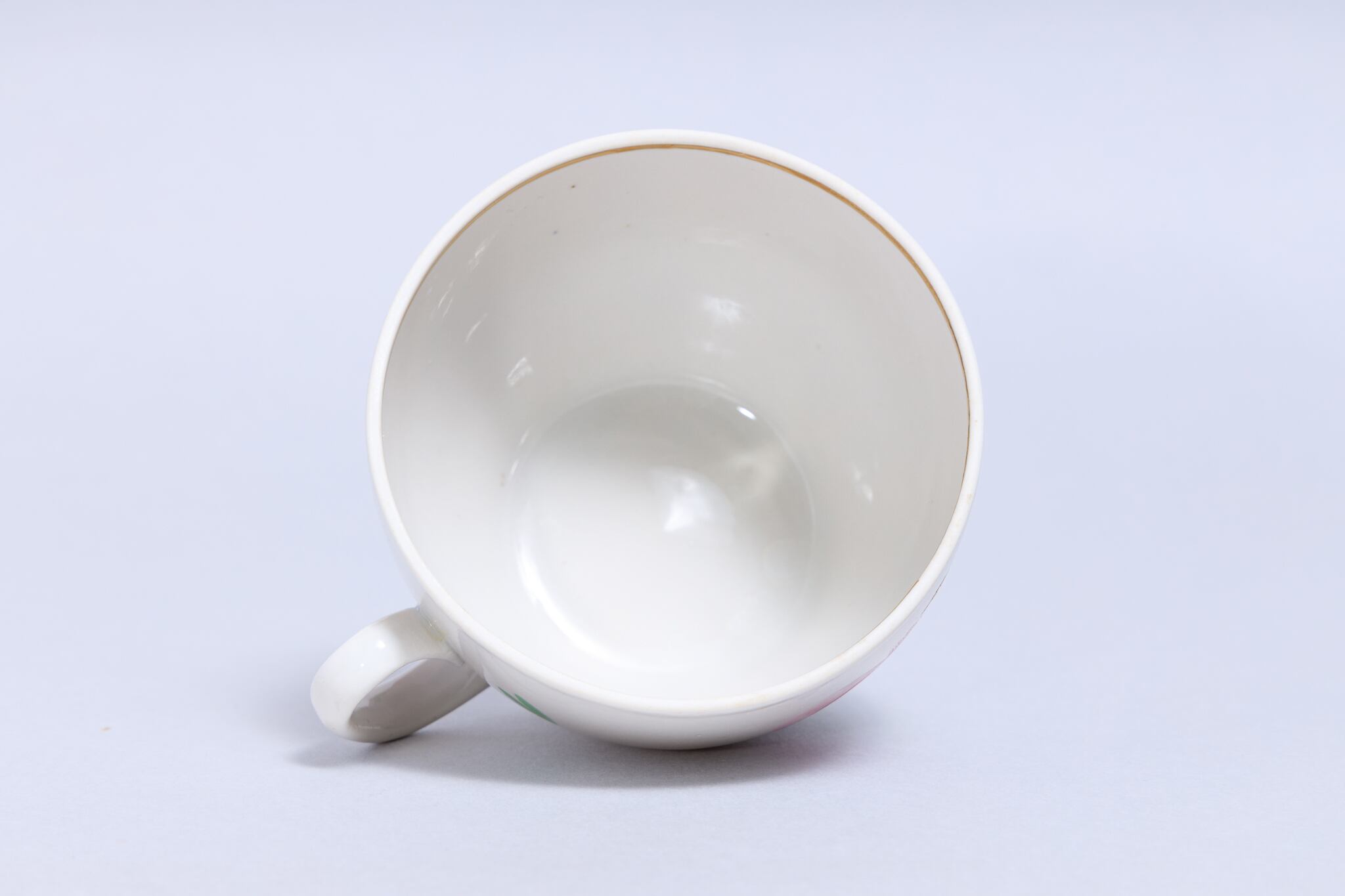 また、ソ連製は日本製などと違い、等級によって作りの丁寧さが違い、低い等級の物は、絵付けのムラがあったり、飲み口や底の多少の凹凸などがあったりします。