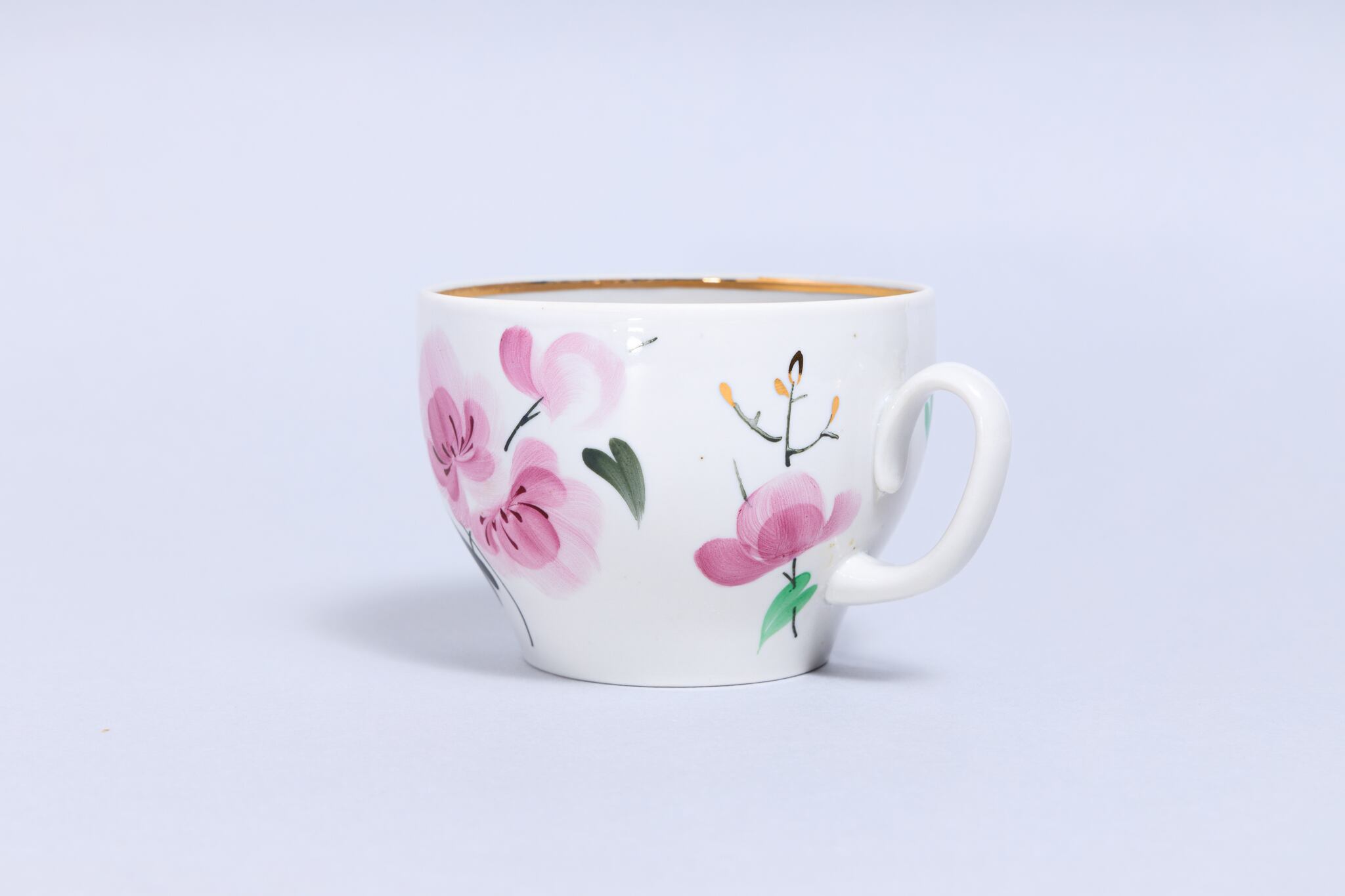 旧ソ連時代に生産されたヴィンテージのカップです。淡い水彩画タッチで描かれていて可愛らしいカップですです。ロシアのノブゴロドのクラスヌイ・ファルフォリスト磁器工場で1962-1971 年に製造されました。希少な物です。旧ソ連の市場で購入しました。