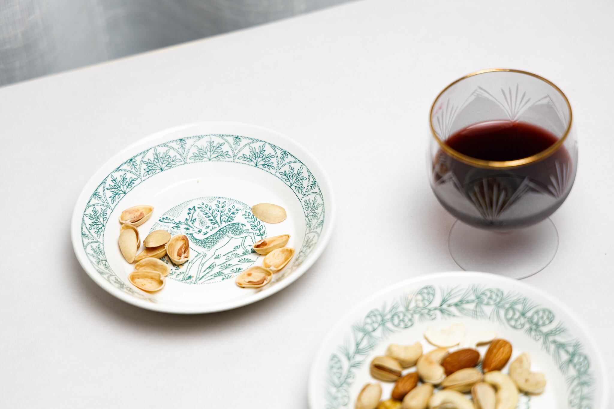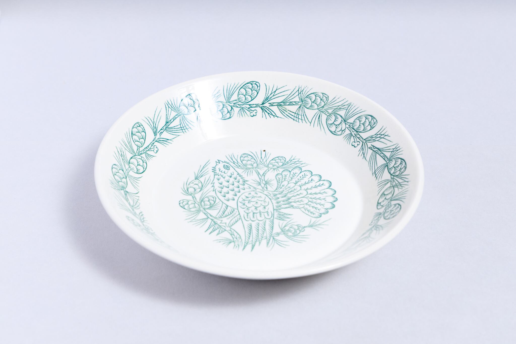 ヴィンテージの小さめの皿です。デザートはもちろんナッツ類などを入れるのにもぴったりです。ロシアのトヴェリ州コナコヴォ陶器工場で1974-1991年に製造されました。コナコヴァらしい淡い色使いで外側に松ぼっくり、中央に鳥が描かれています。ロシアの絵本の挿絵のようです。旧ソ連の市場で購入しました。