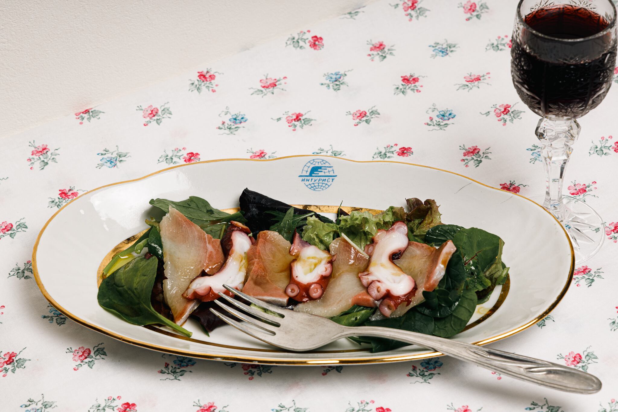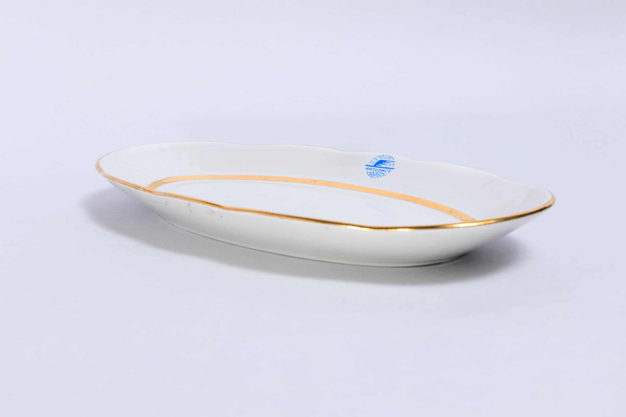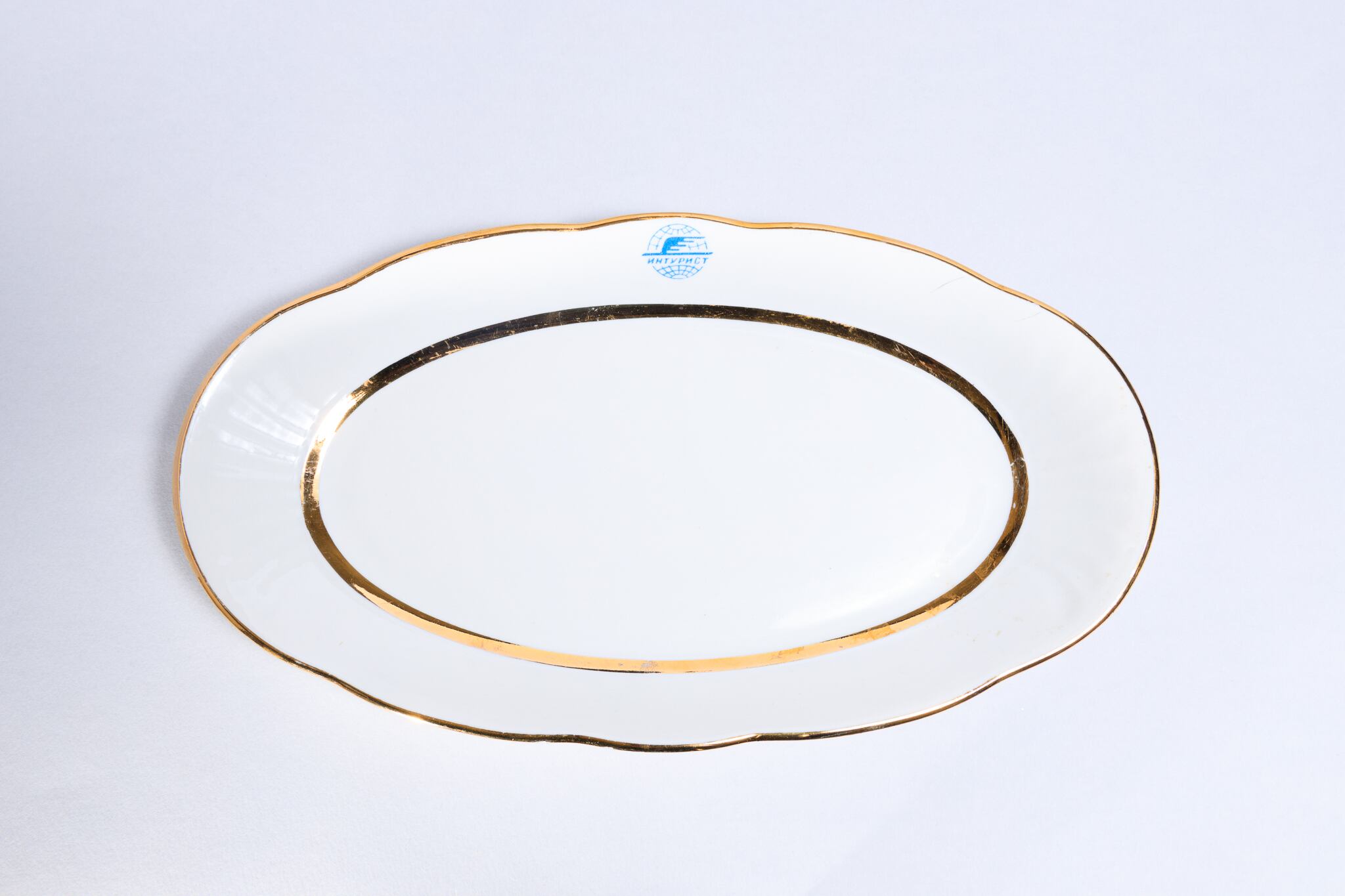 ヴィンテージの前菜プレートです。このプレートにはソ連時代の1929年に創立されたソ連で唯一の旅行社だったインツーリストのマークが入っています。ソ連時代は外国人がソ連を旅行する場合はインツーリストを通じてでないと旅行ができませんでした。そしてインツーリストを通して宿泊するホテルのレストランの食器には全てこのマーク入ってました。ソ連時代を象徴する素敵なアイテムです。ラトビアのリガ磁器工場で1970-1980年に製造されました。旧ソ連の市場で購入しました。