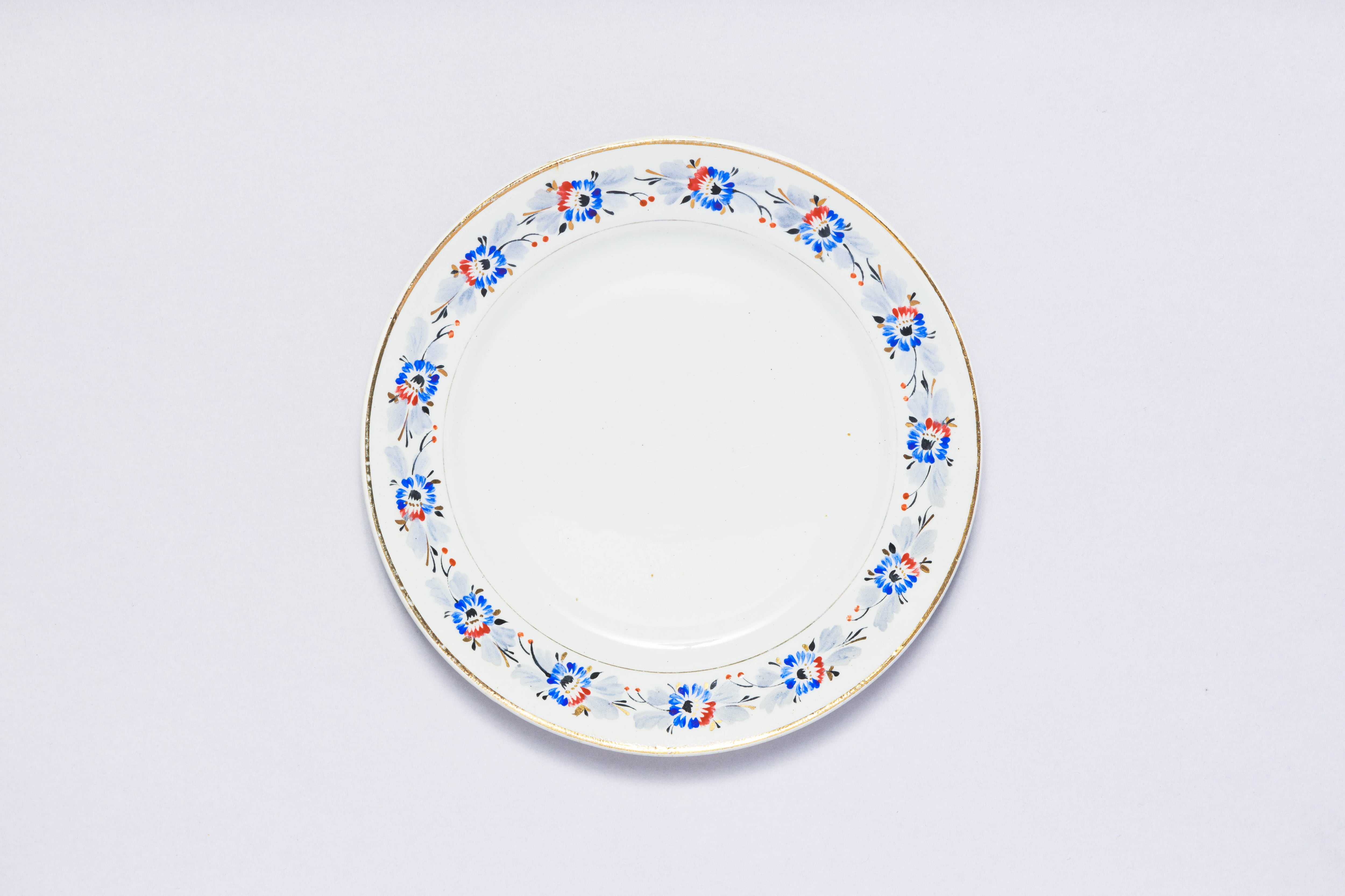 ヴィンテージのお皿です。旧ソ連時代に生産されたプレートです。筆で描かれたようなレトロな花柄がとても素敵な一枚です。ウクライナ ハルキウのブディ村のブディ陶器工場で1965-1967年に製造されました。 旧ソ連の市場で購入しました。年代も古く、2年の間しか製造されていないとても希少なお品です。