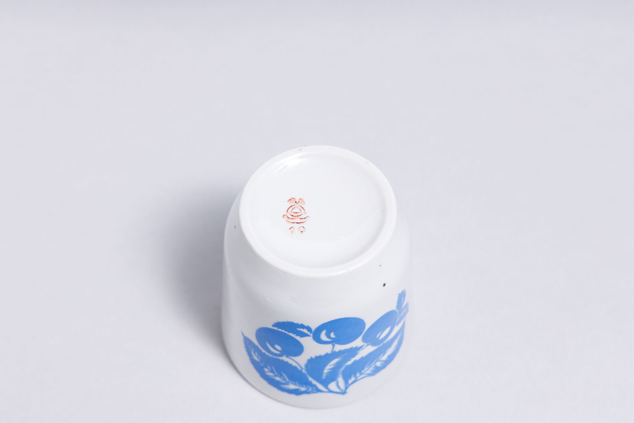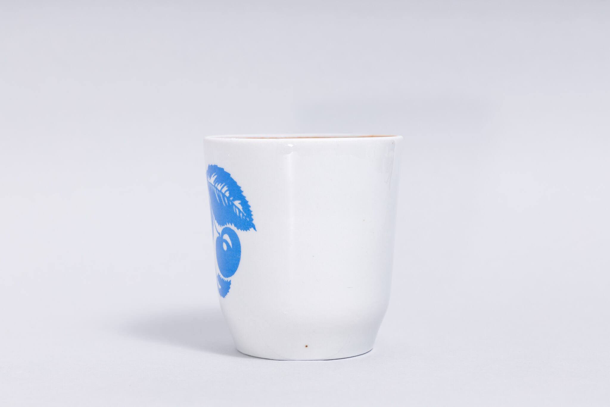 ヴィンテージのカップです。旧ソ連時代に生産された可愛らしいさくらんぼが描かれている持ちてのないキャッチーなカップです。ソ連の保育園などの給食時に使われていたのでしょうか。ロシアのノブゴロドのクラスヌイ・ファルフォリスト磁器工場で1971-1991年に製造されました。旧ソ連の市場で購入しました。コーヒーや緑茶などに最適です。