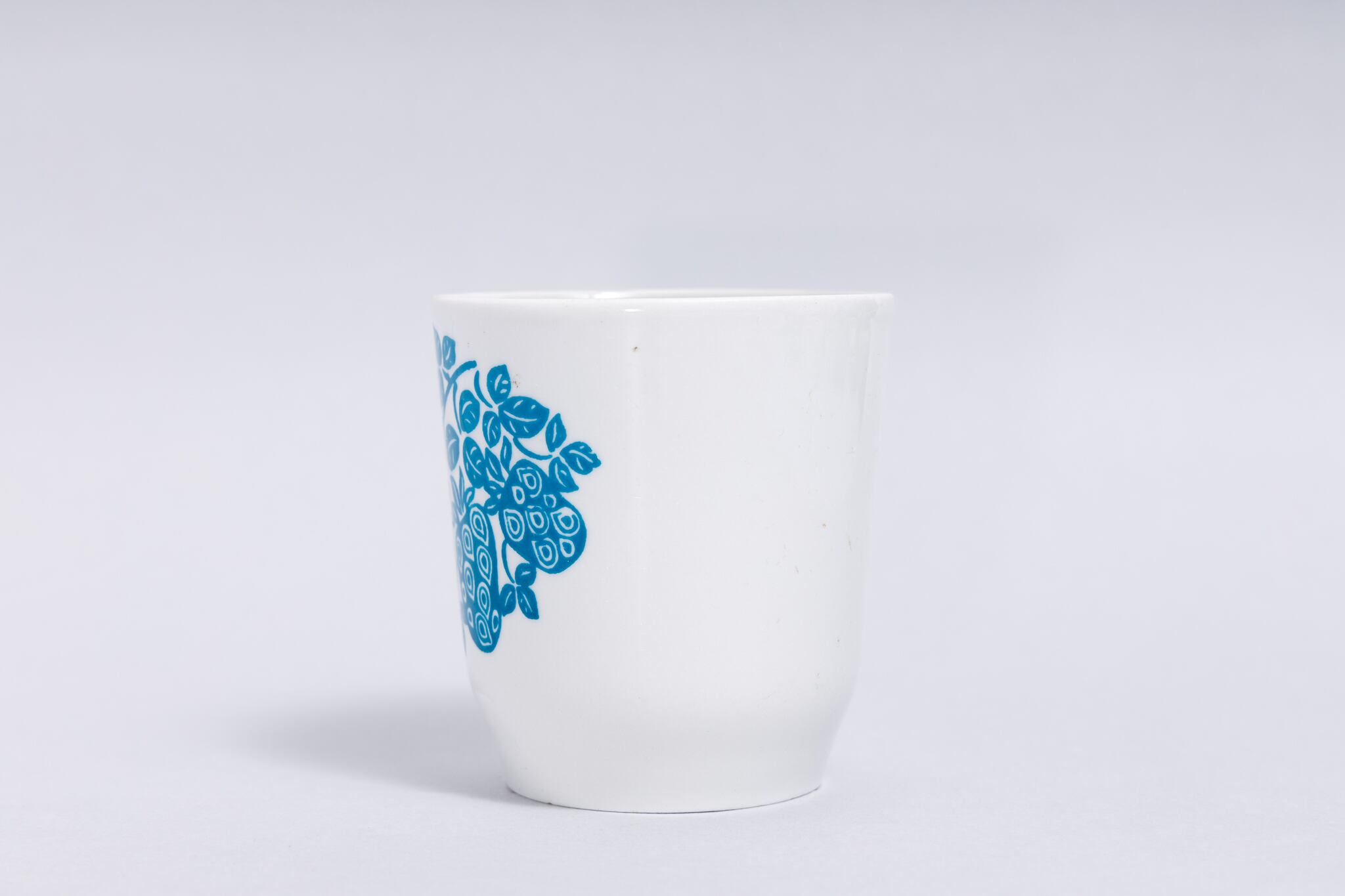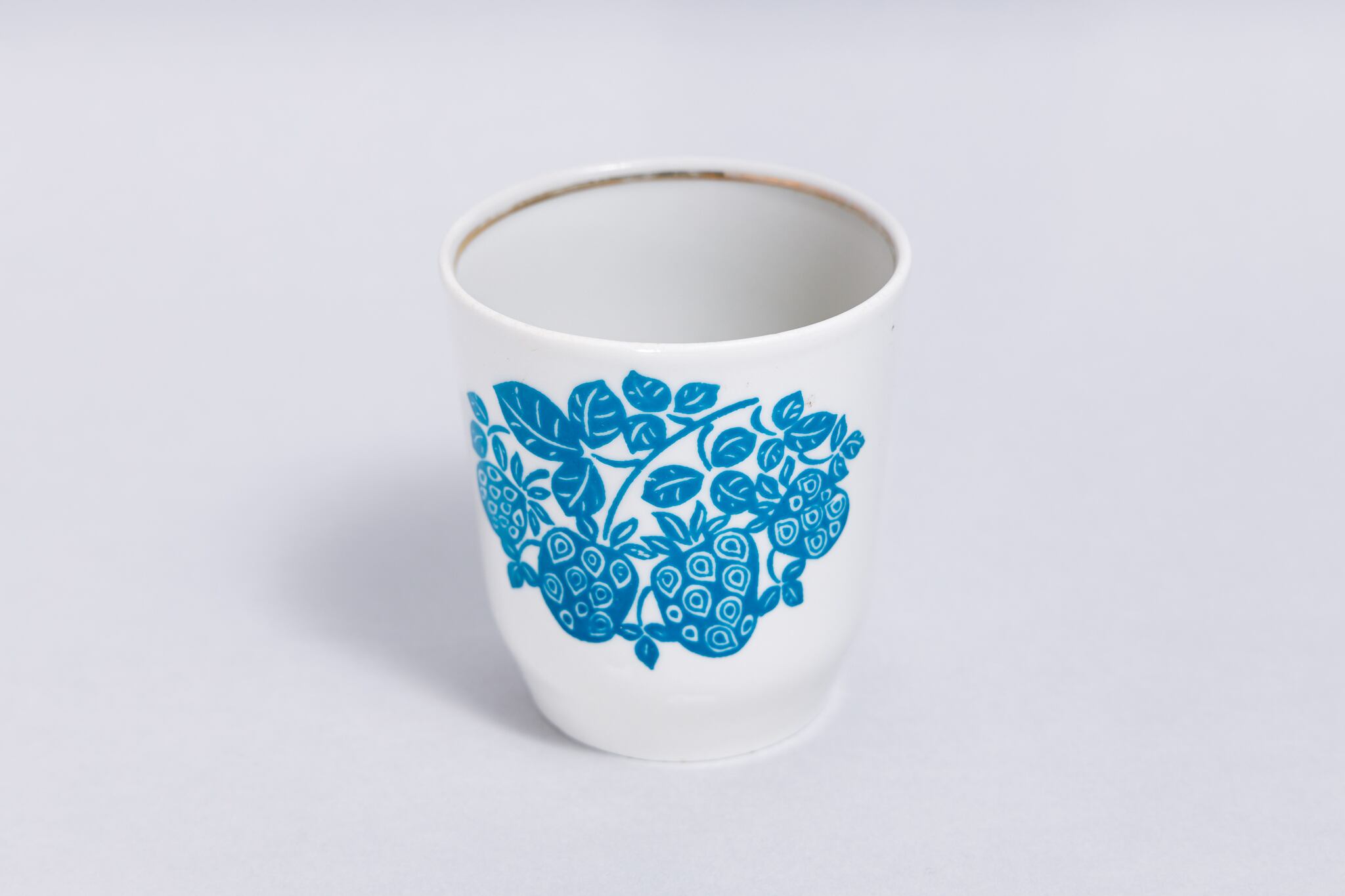 ヴィンテージのカップです。旧ソ連時代に生産されたいちごが描かれている持ちてのないカップです。種が独特な表現で描かれています。切り絵のような柄にも感じます。ソ連の保育園などの給食時に使われていたのでしょうか。コーヒーや緑茶などに最適です。ロシアのノブゴロドのクラスヌイ・ファルフォリスト磁器工場で1971-1991年に製造されました。旧ソ連の市場で購入しました。