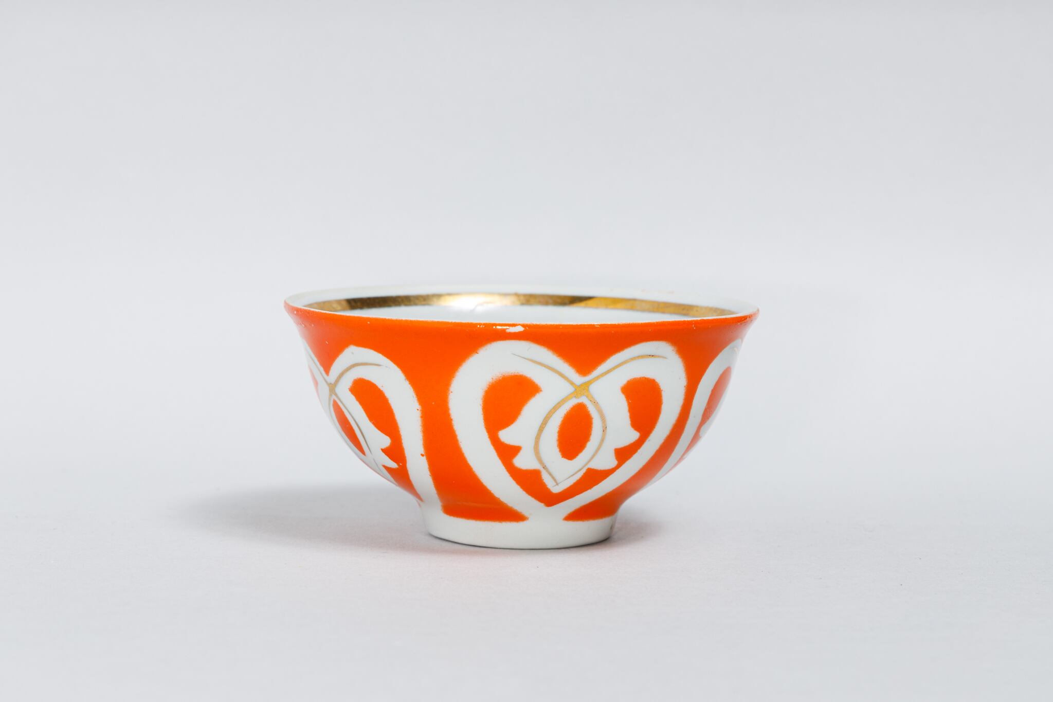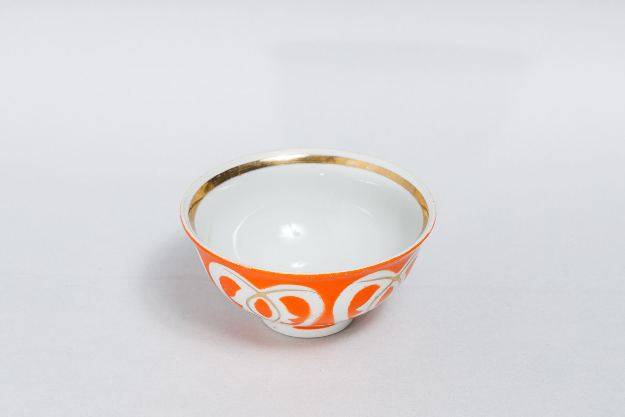 旧ソ連時代にカザフスタンの中央アジアでよく使われている取っ手のないヴィンテージのカップです。 中央アジアで有名なのはウズベキスタンのタシケント磁器工場ですが、この商品はカザフスタンのツェリノグラード磁器工場で生産されたカップです。結構珍しいのでヒビが入っていましたが、買い付けました。1980-1990年に製造された物です。 ウズベキスタンでよく見る白と紺の綿花柄模様ではない民族調の柄が描かれています。旧ソ連の市場で購入しました。