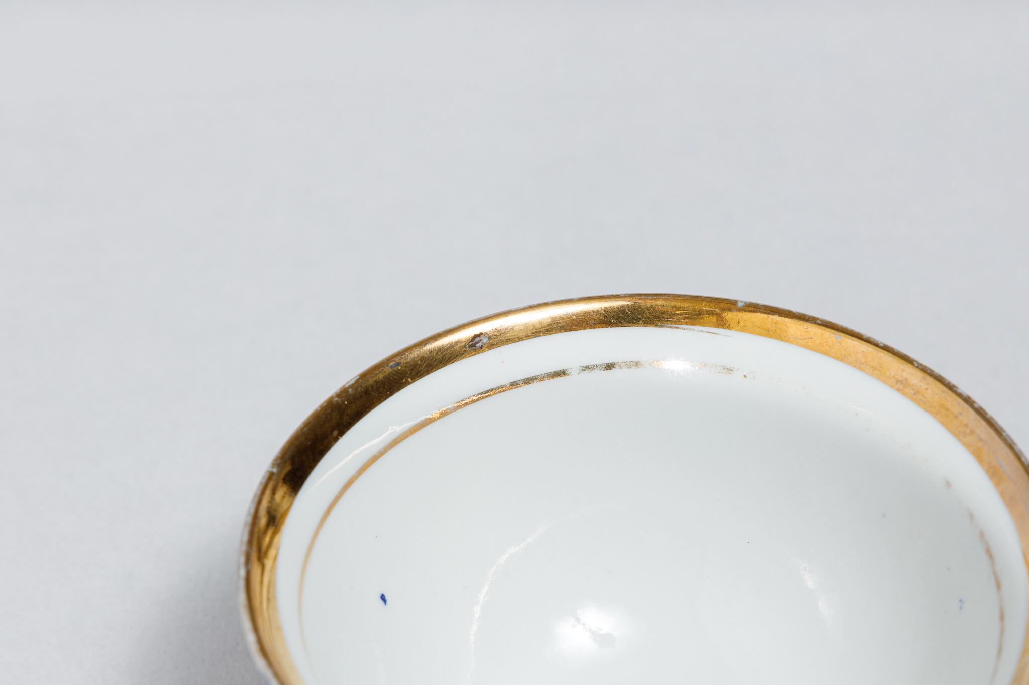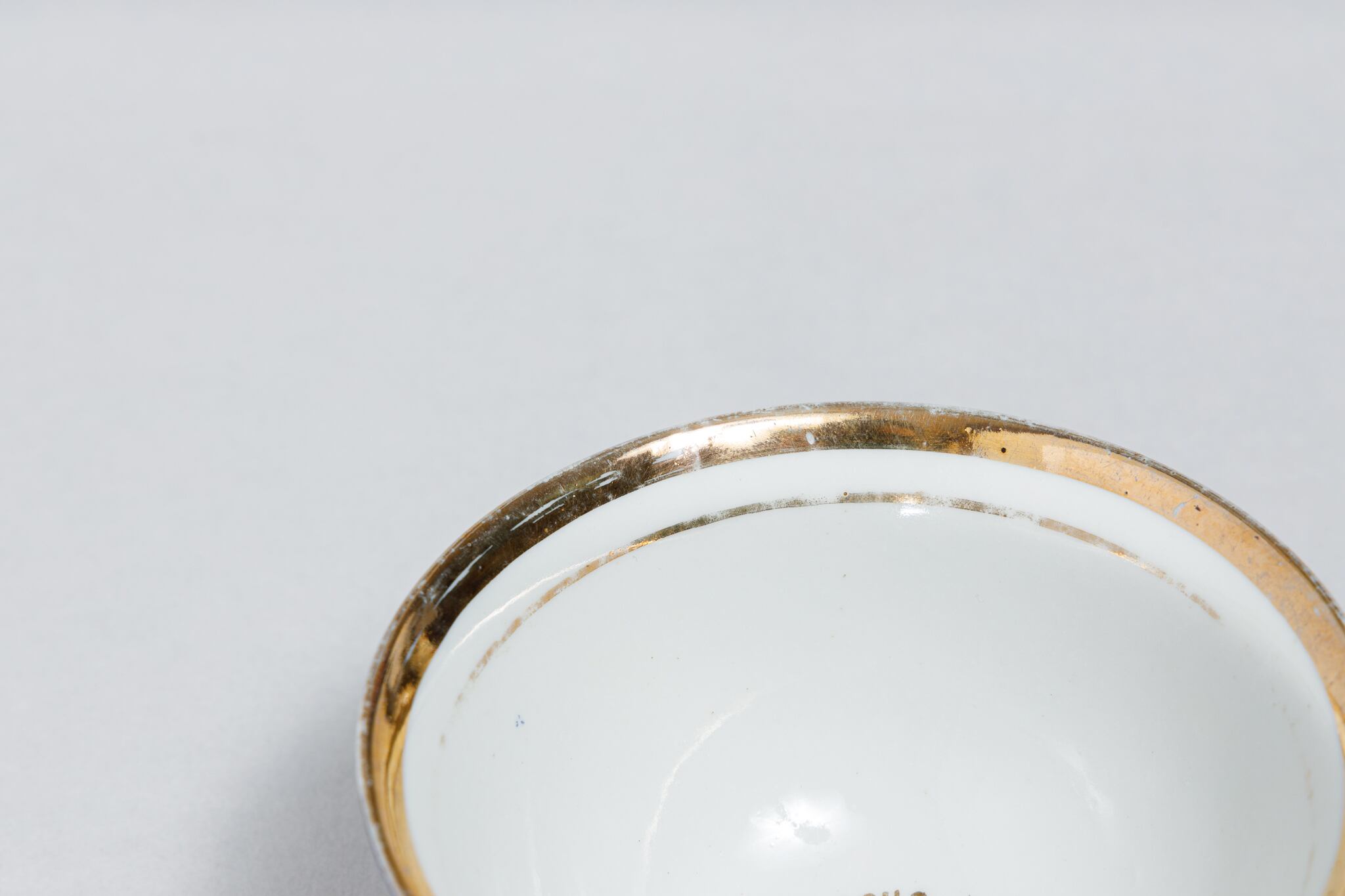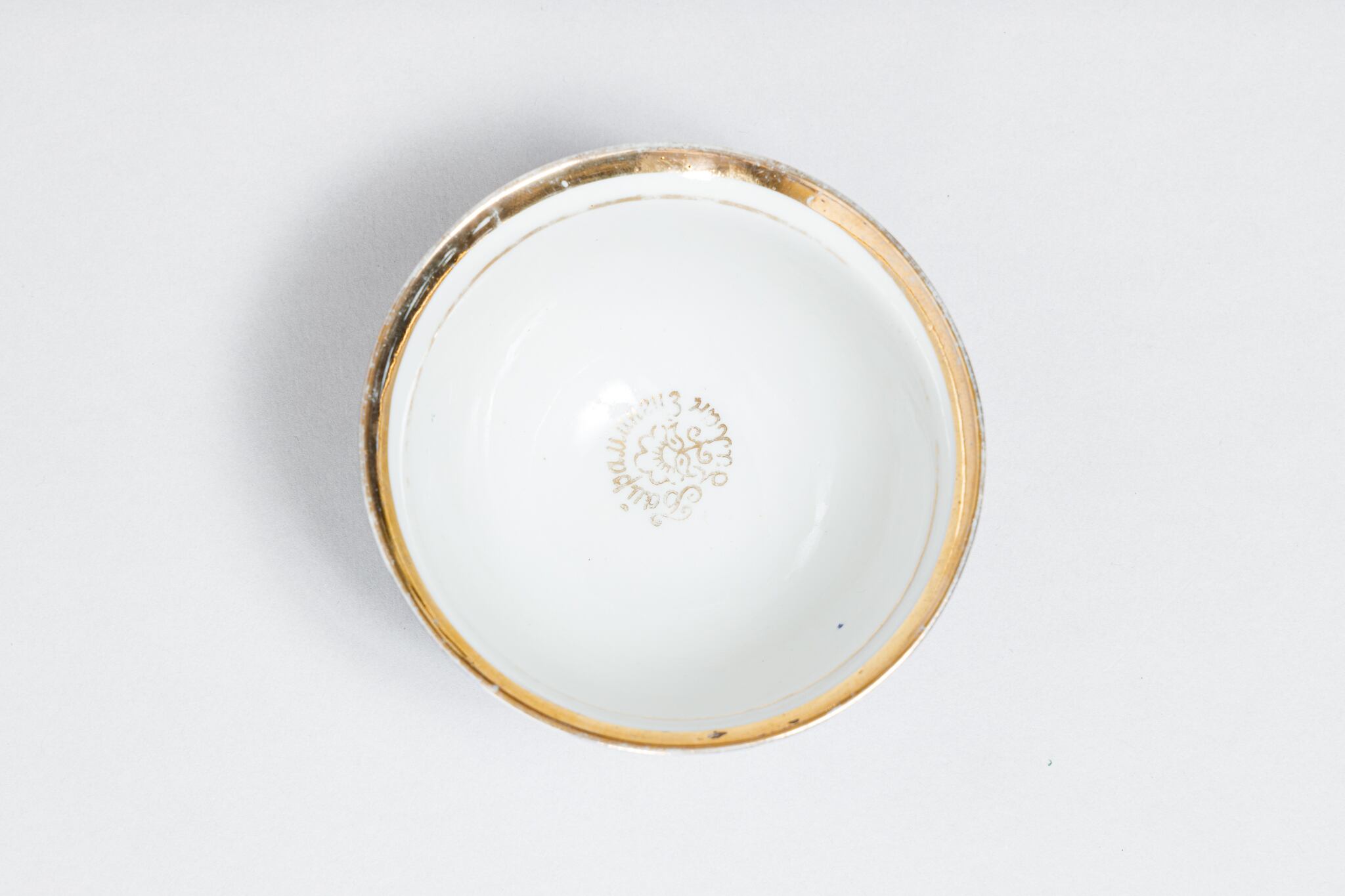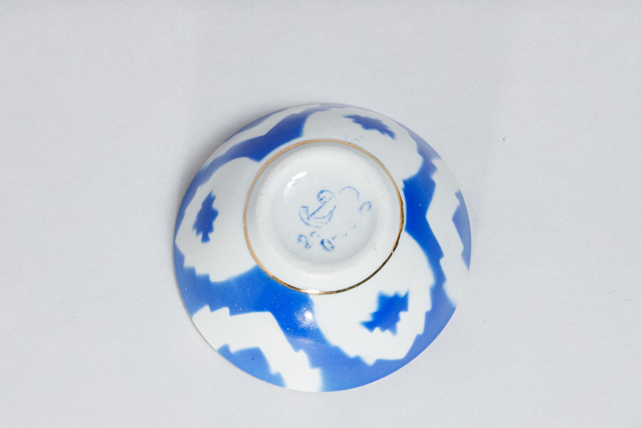また、ソ連製は日本製などと違い、等級によって作りの丁寧さが違い、低い等級の物は、絵付けのムラがあったり、飲み口や底の多少の凹凸などがあったりします。