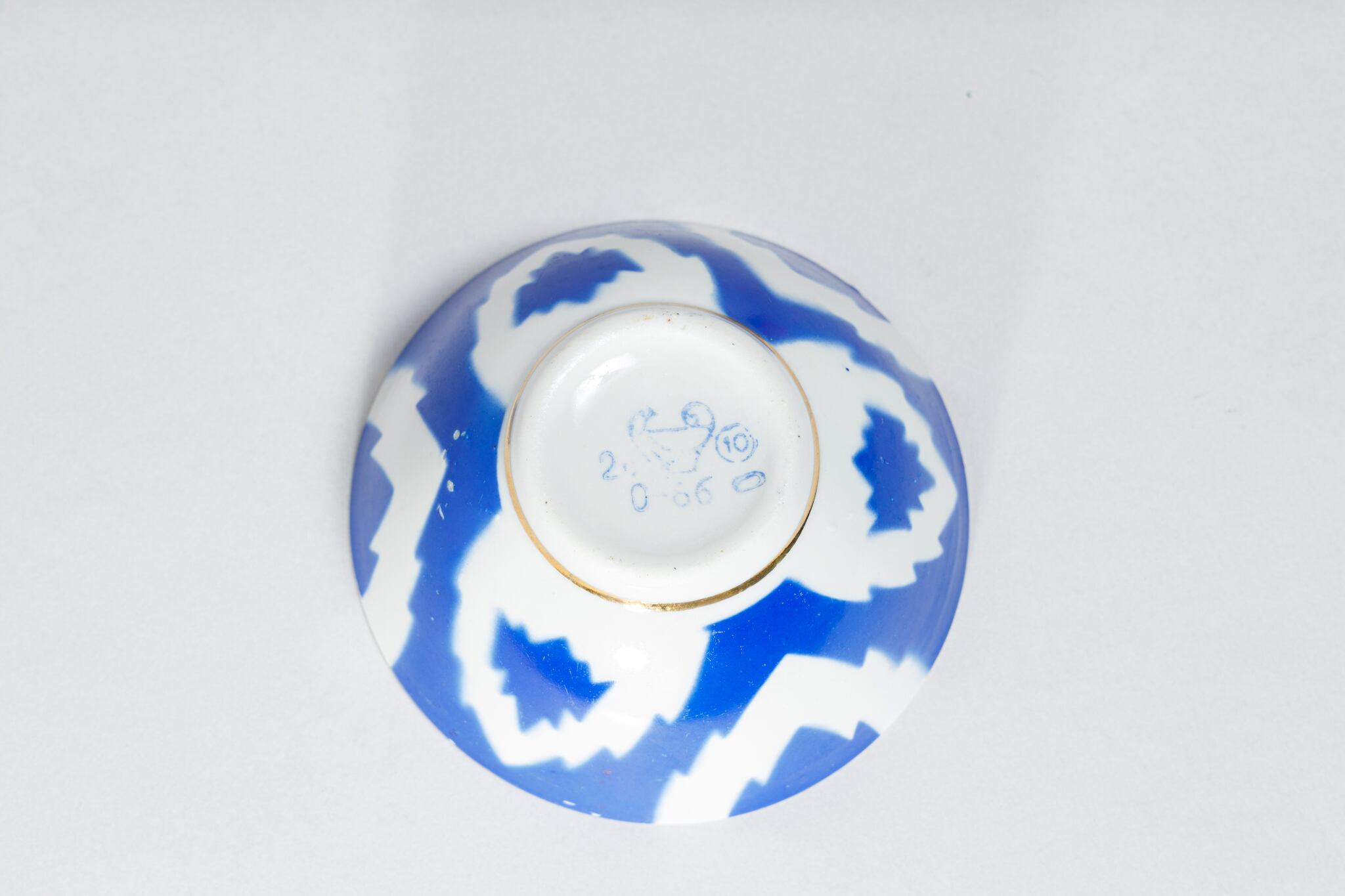 また、ソ連製は日本製などと違い、等級によって作りの丁寧さが違い、低い等級の物は、絵付けのムラがあったり、飲み口や底の多少の凹凸などがあったりします。