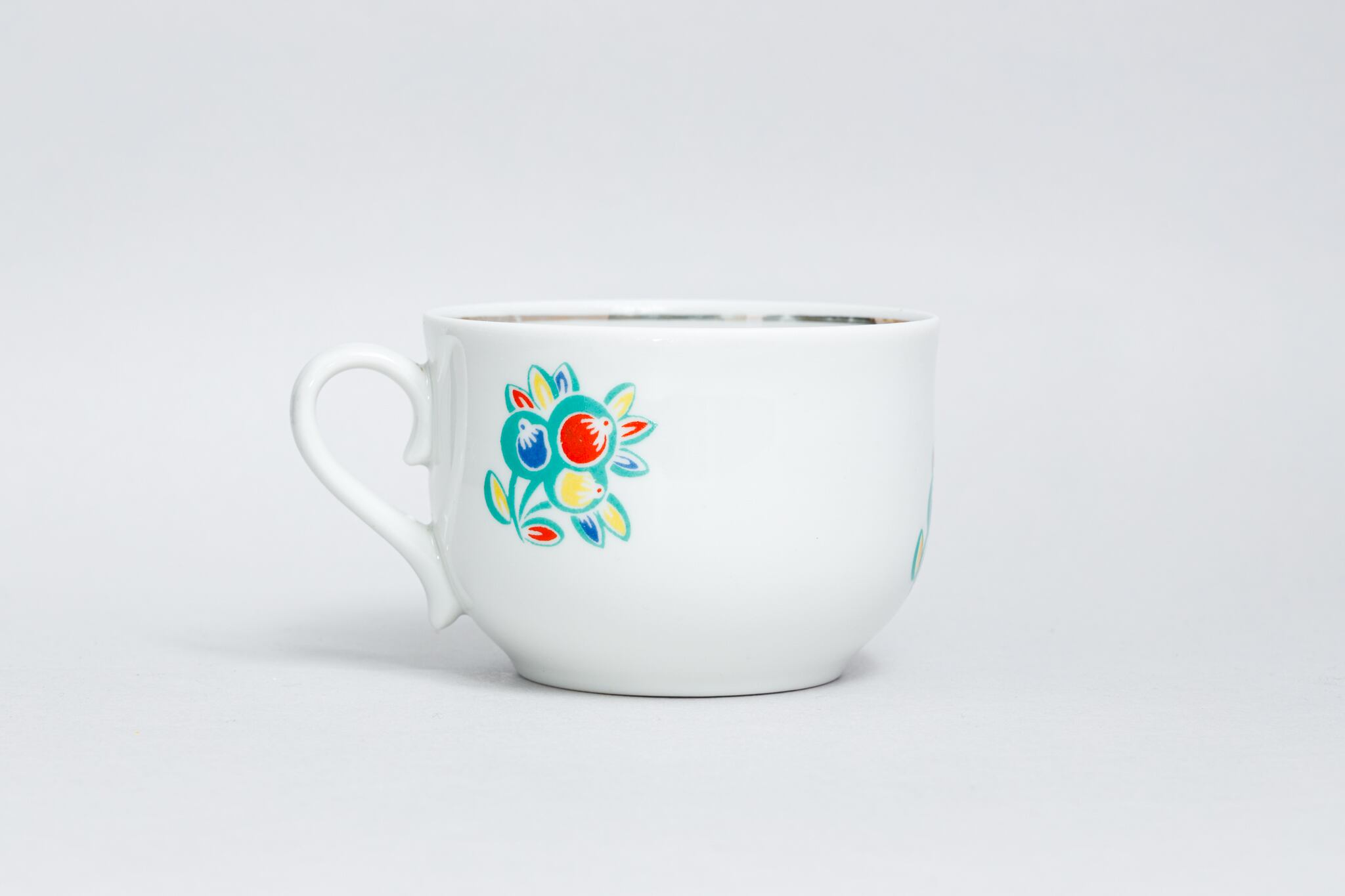 このカップは旧ソ連時代のウクライナのリヴィウ州にあるボリスラフ陶磁器工場で1964年-1974年に作られたものです。旧ソ連の市場で購入しました。