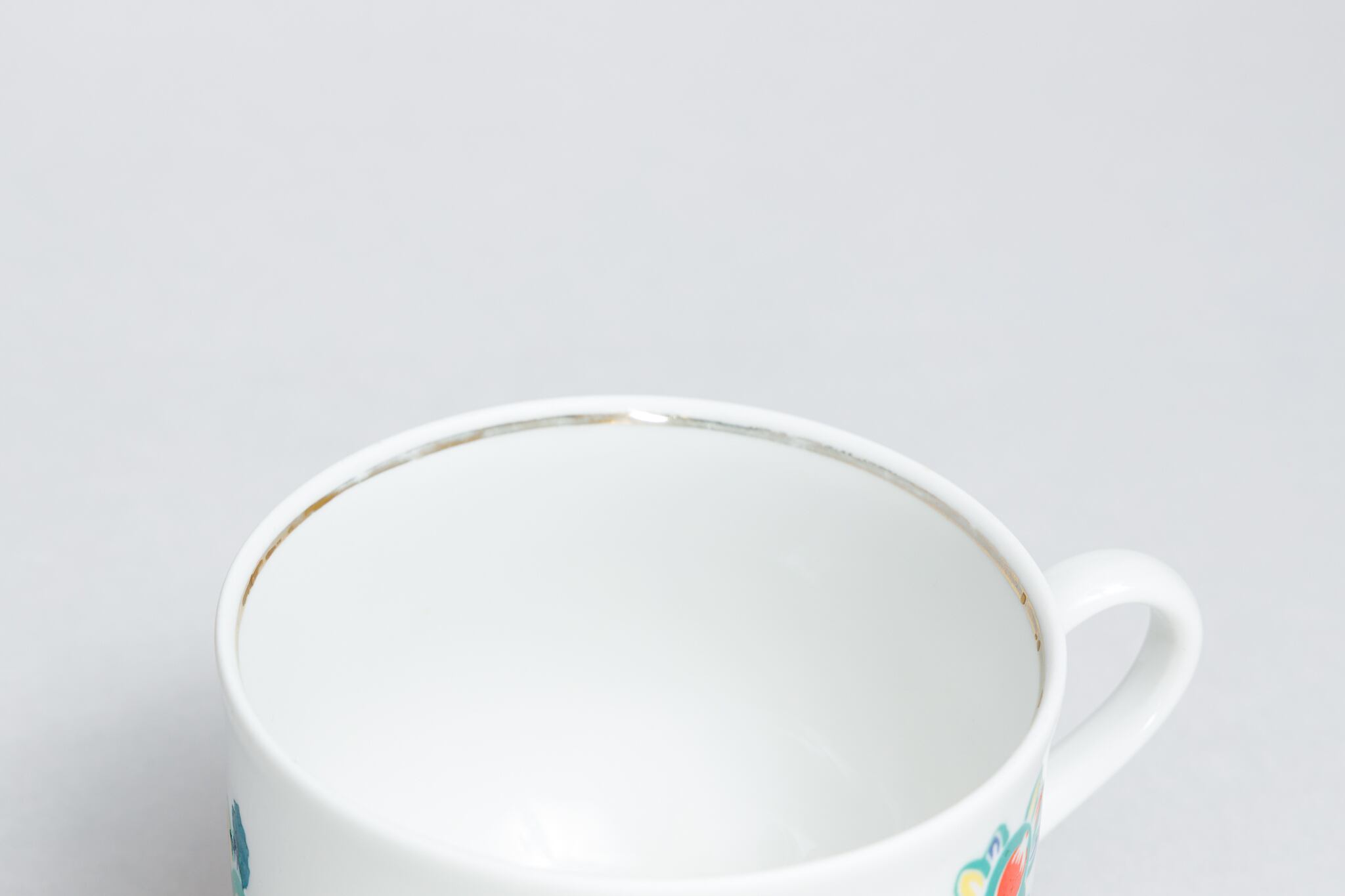 また、ソ連製は日本製などと違い、等級によって作りの丁寧さが違い、低い等級の物は、絵付けのムラがあったり、飲み口や底の多少の凹凸などがあったりします。