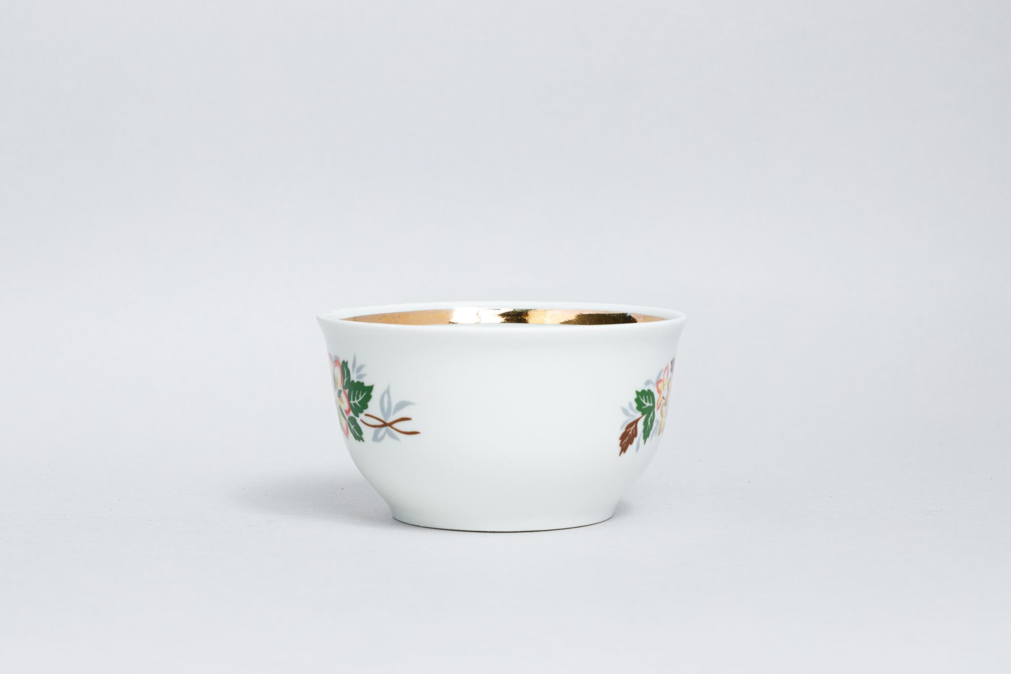 また、ソ連製は日本製などと違い、等級によって作りの丁寧さが違い、低い等級の物は、絵付けのムラがあったり、飲み口や底の多少の凹凸などがあったりします。