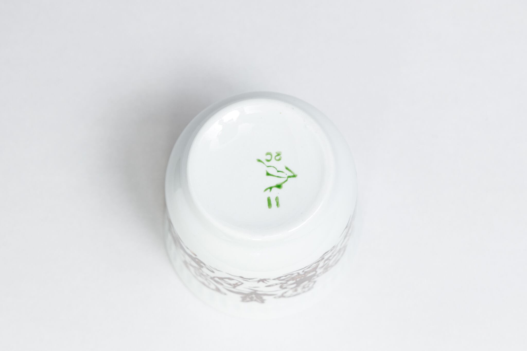また、ソ連製は日本製などと違い、等級によって作りの丁寧さが違い、低い等級の物は、絵付けのムラがあったり、飲み口や底の多少の凹凸などがあったりします。