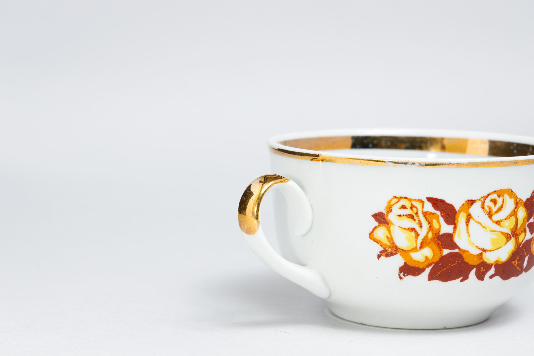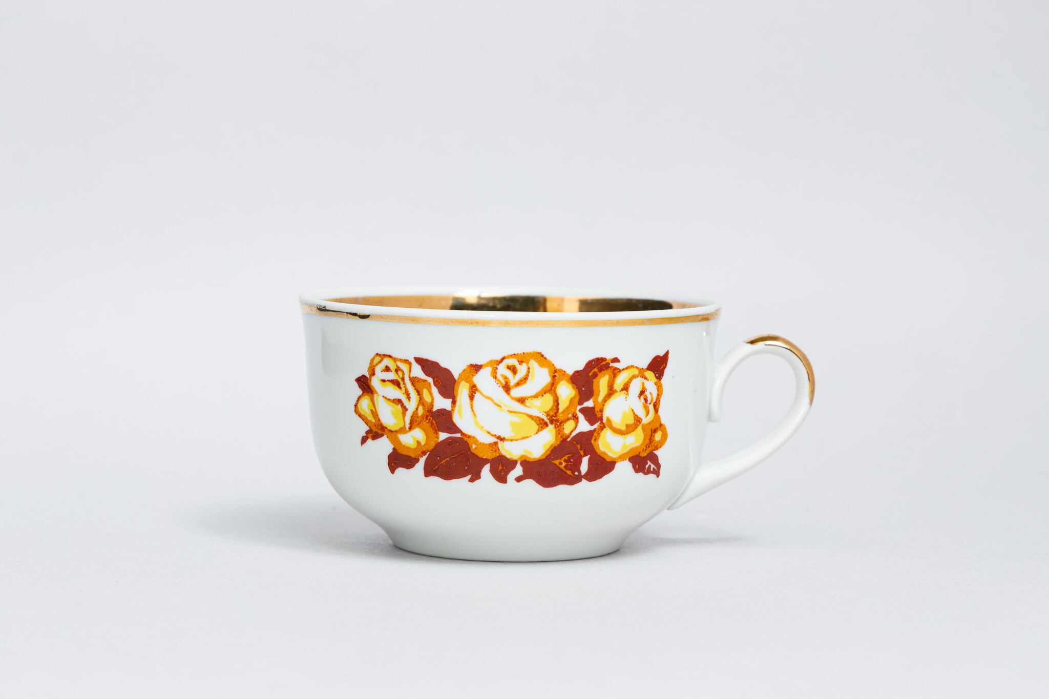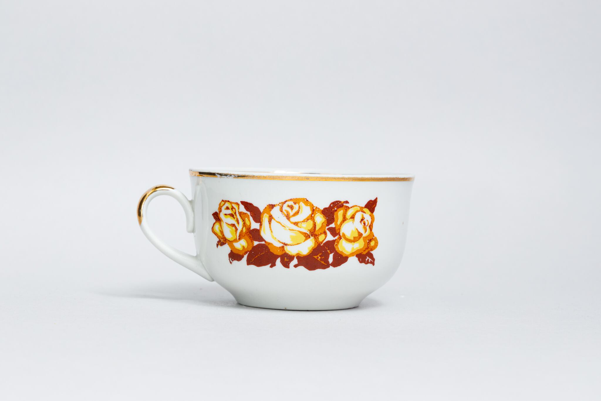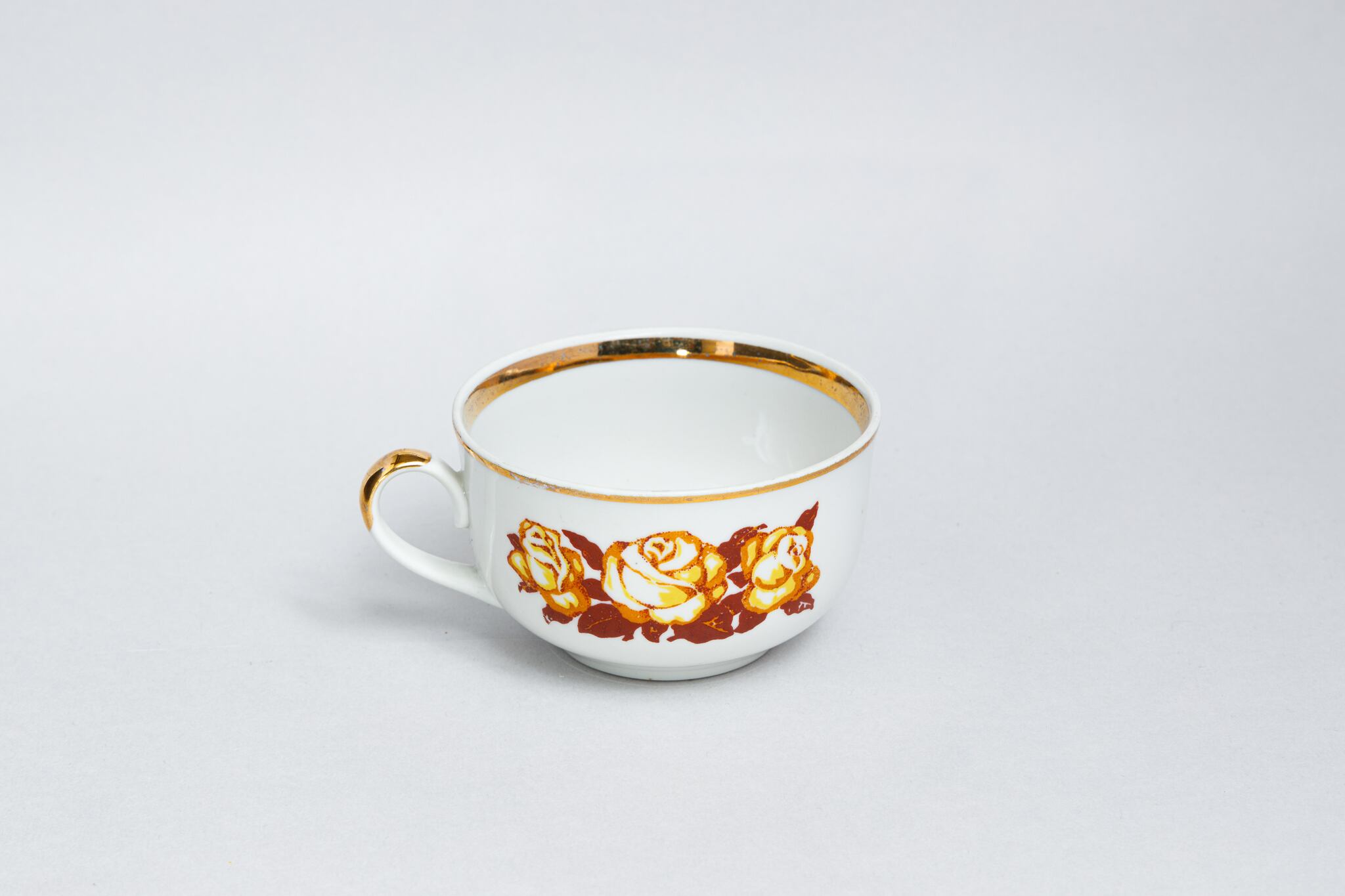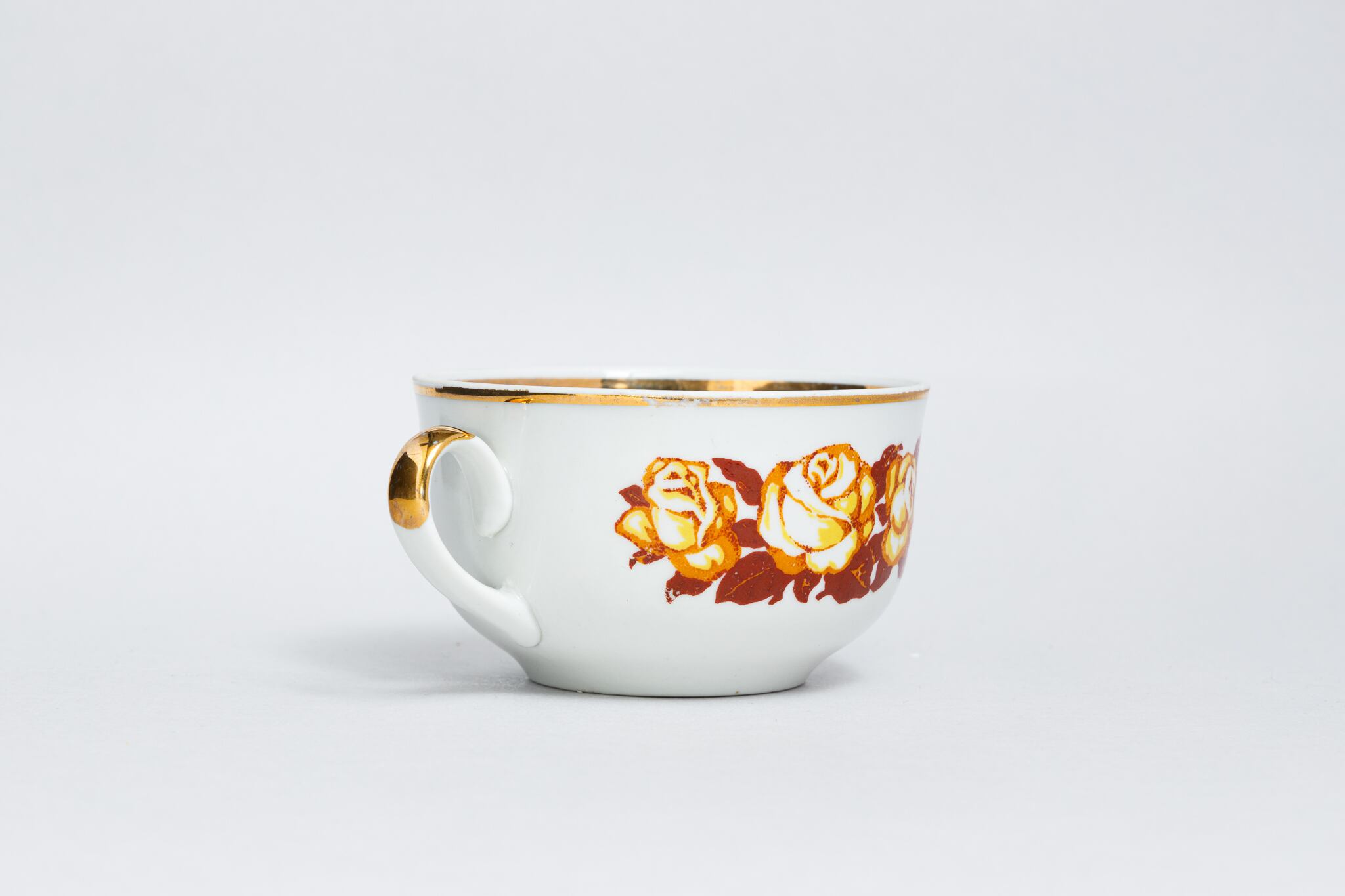 ヴィンテージ 茶色と黄色のバラ柄カップ テルノーピリ陶磁器工場 旧ソ連 0317