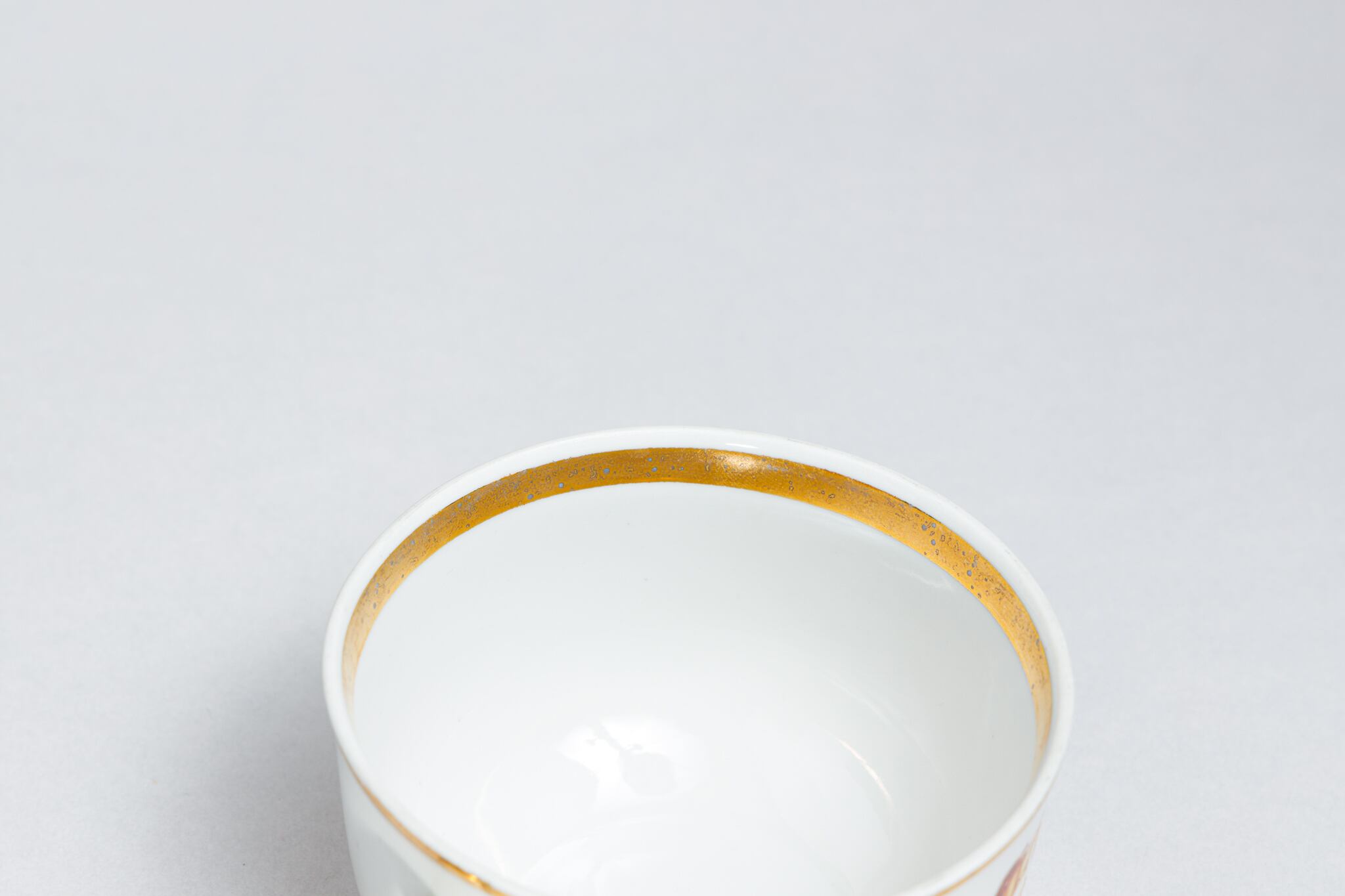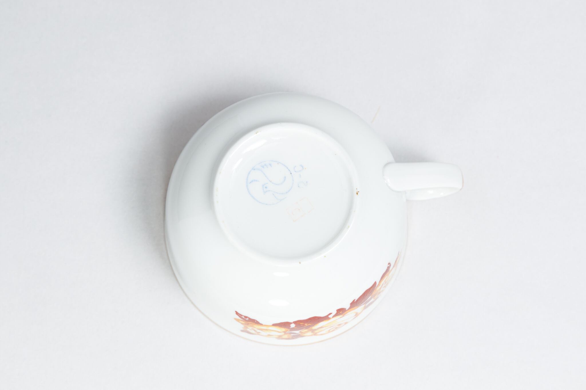 また、ソ連製は日本製などと違い、等級によって作りの丁寧さが違い、低い等級の物は、絵付けのムラがあったり、飲み口や底の多少の凹凸などがあったりします。
