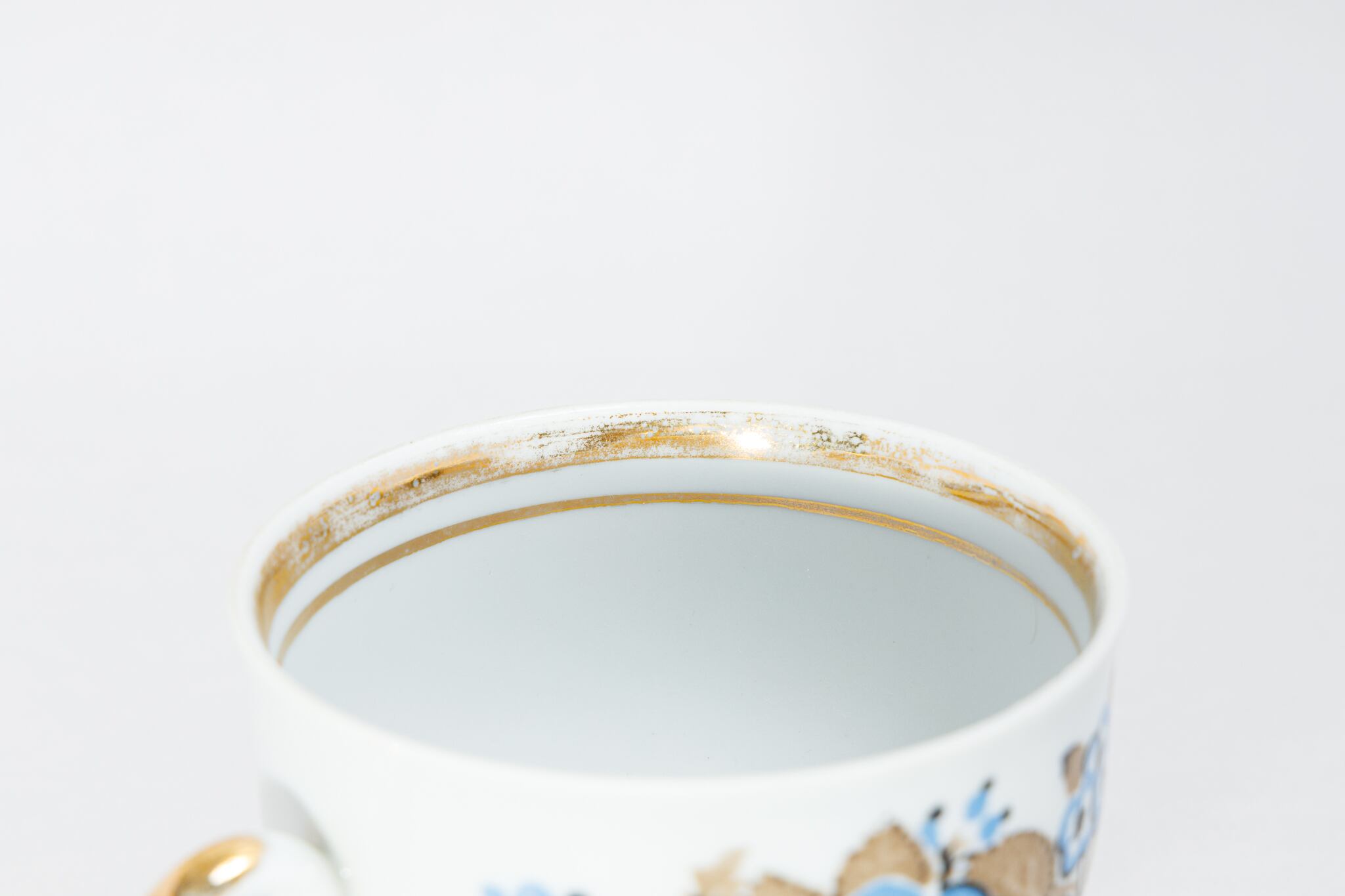 また、ソ連製は日本製などと違い、等級によって作りの丁寧さが違い、低い等級の物は、絵付けのムラがあったり、飲み口や底の多少の凹凸などがあったりします。