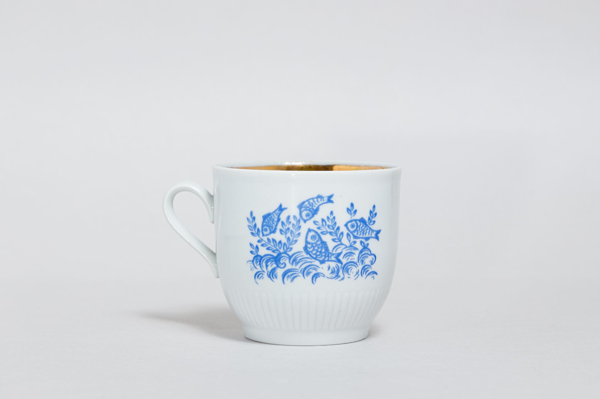 ヴィンテージのカップです。水の中の魚と藻が描かれています。物語のワンシーンのようです。ロシアのノブゴロドのプロレターリ磁器工場で1976-1991年に製造されました。プロレターリ磁器の中でも古い時代のものになります。 旧ソ連の市場で購入しました。
