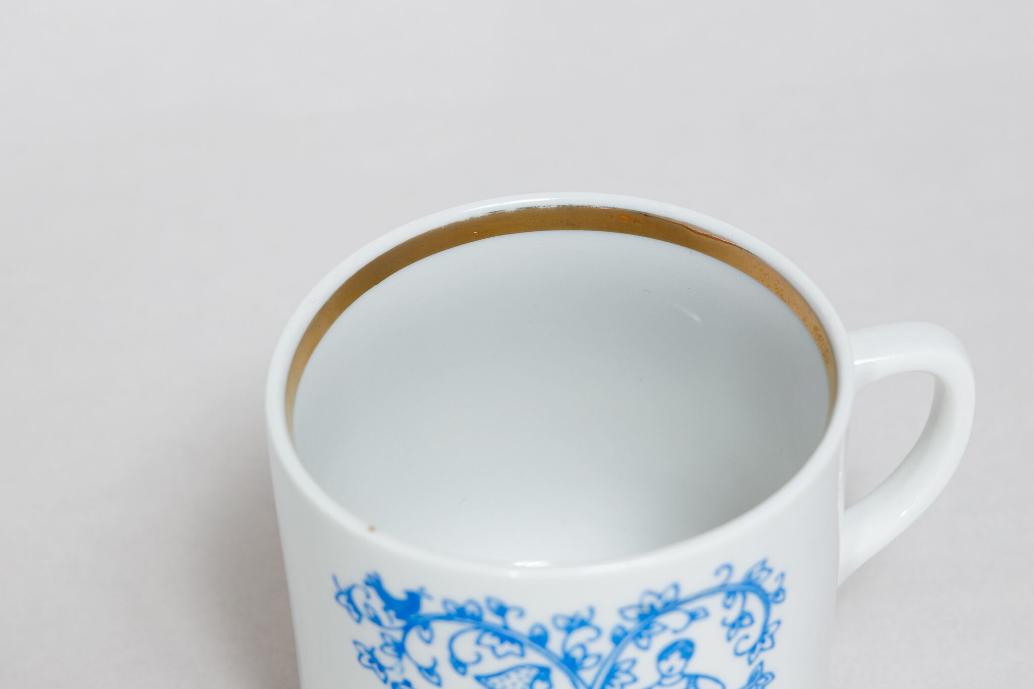 また、ソ連製は日本製などと違い、等級によって作りの丁寧さが違い、低い等級の物は、絵付けのムラがあったり、飲み口や底の多少の凹凸などがあったりします。
