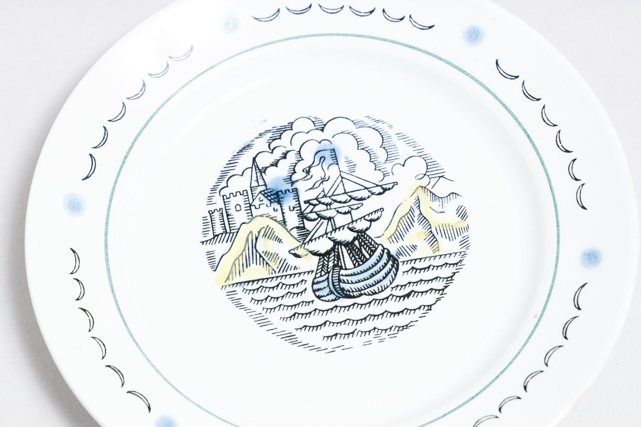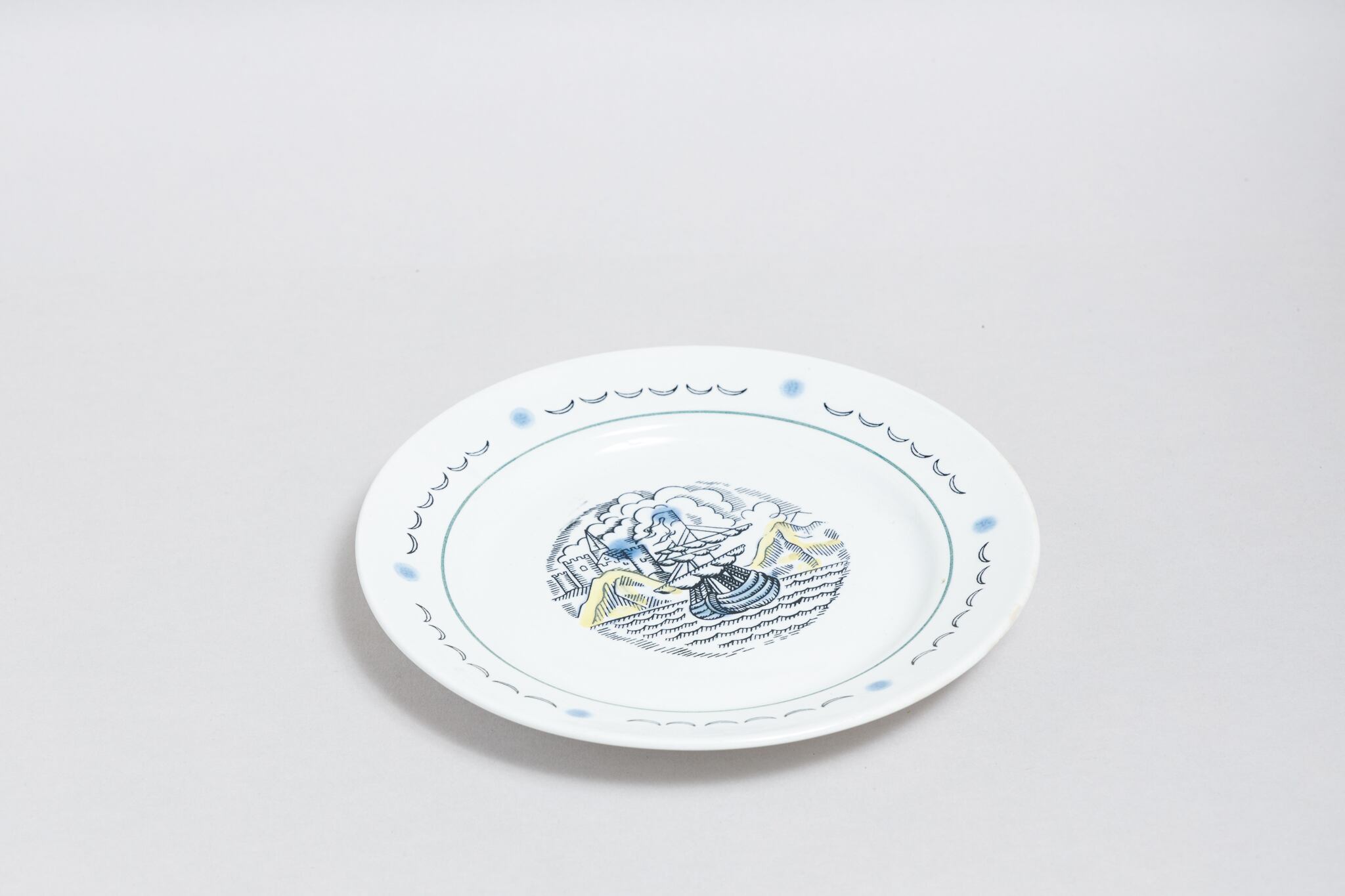 ヴィンテージ 船と景色柄の皿 コナコヴァ陶器工場 旧ソ連 0383