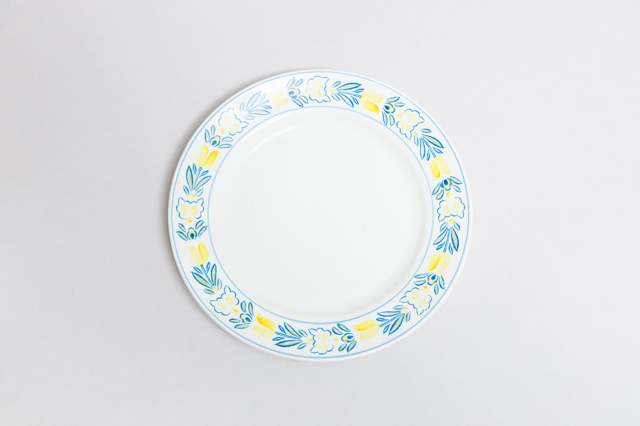 ヴィンテージの黄色のチューリップ柄のお皿です。ロシアのトヴェリ州コナコヴォ陶器工場で1962-1974年に製造されました。年代は古いですがかなり良好な状態です。黄色のチューリップ柄が目を惹き、見つけた時には思わず「可愛い!これで何を食べようかしら」と思いました。本当に素朴で可愛いの一言です。旧ソ連の市場で購入しました。
