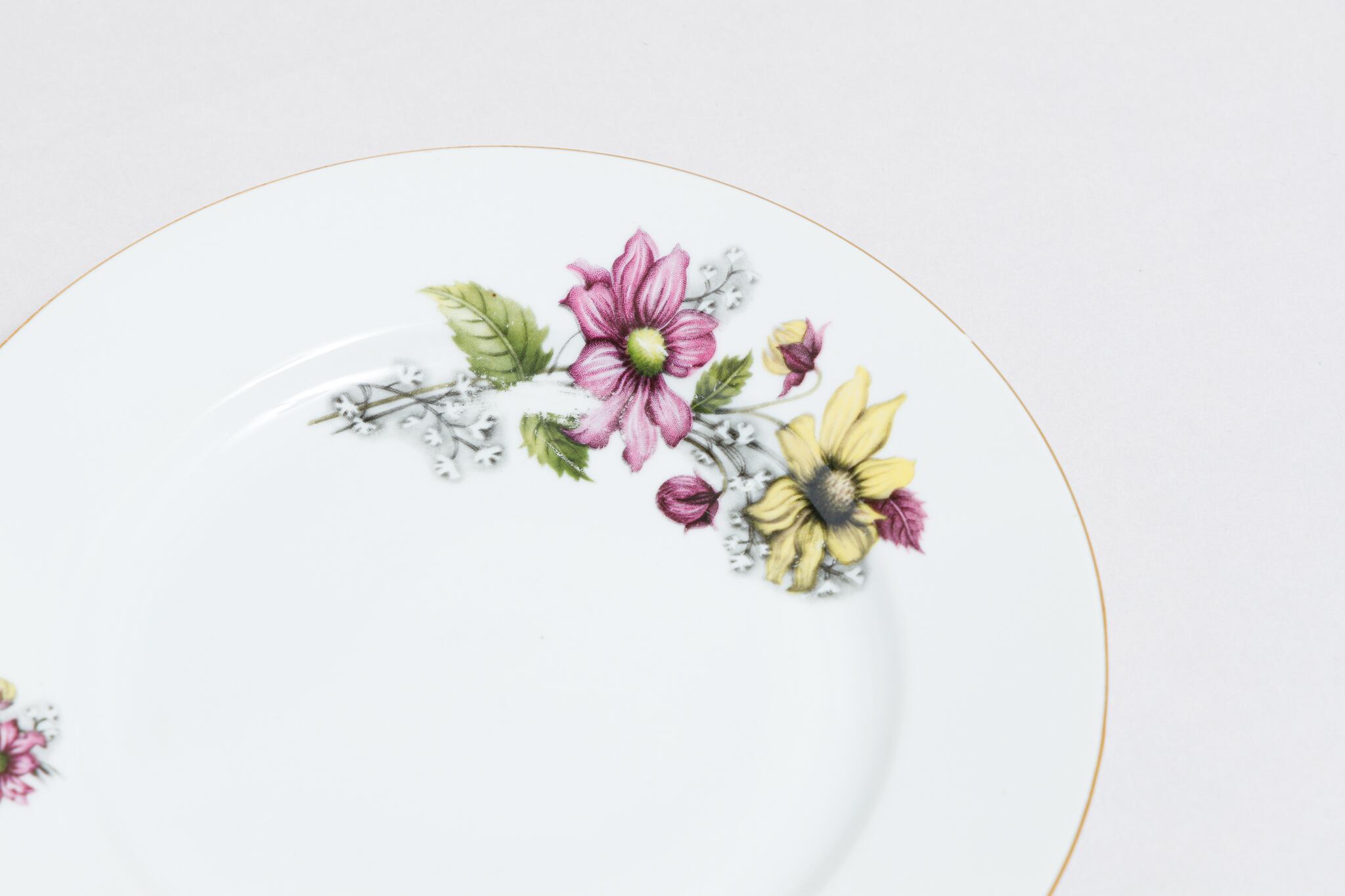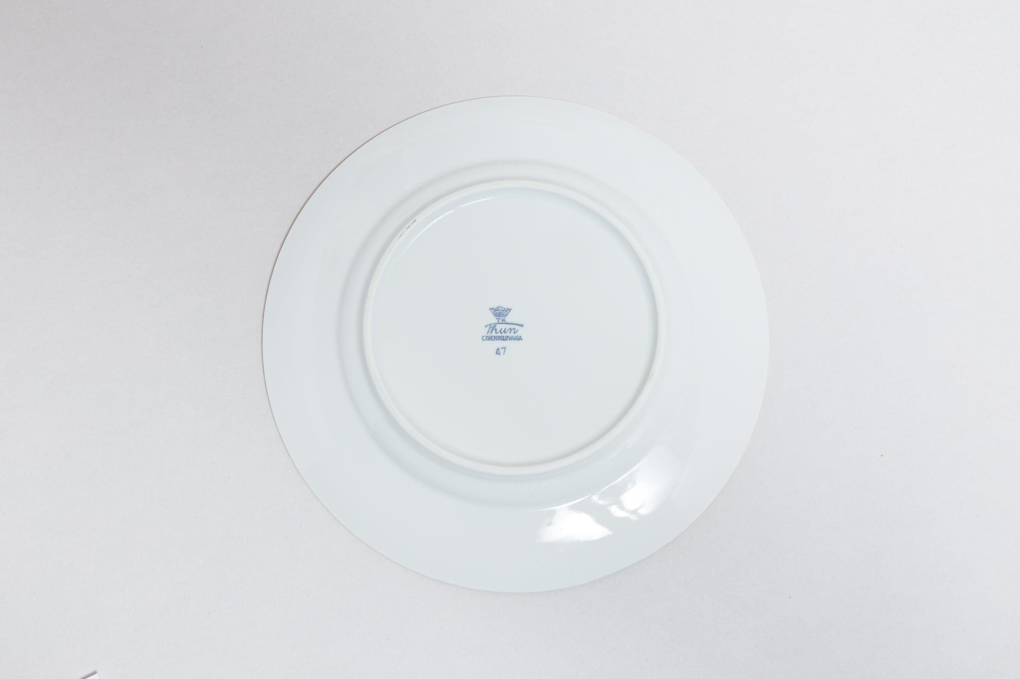 チェコスロバキア時代に生産されたヴィンテージのお皿です。ムラサキバレンギクと呼ばれるキク科のお花が描かれています。今はもう存在しないチェコスロバキアという国のThun陶器工場で製造されました。陶器工場は現在もチェコにあります。旧ソ連の市場で購入しました。